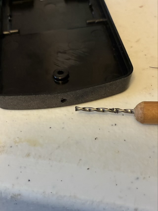 The back of this kind of pitch pipe removes with a single screw. Use the smallest drill bit possible to drill the hole through the thick section of the plastic. Head pins are available in the jewelry section of most hobby stores, as are split rings. I used a clip-on strap from a small purse.