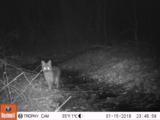 So we check the trail cam periodically, and on this last check found a picture of this cutie.