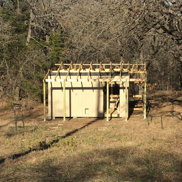 We have siding up! Getting closer to closing in the coop, hurray! I’ve read many articles on not insulating coops for winter, so my husband put up asphalt paper first to keep moisture out. We will put hardware cloth along the top and make hinged covers so we can open up the top of the coop in the summer to help with ventilation, since the heat of our summers is more of a concern than the “cold” winter.