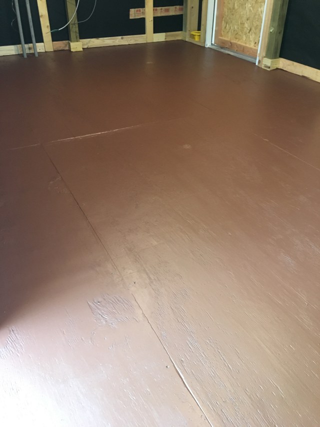 There was some debate on whether to paint the floor of the coop or not. Painted floors are more water resistant and easier to clean. But because most people keep some kind of litter on the coop floor at all times to make the clean up of the droppings easier, bare floor does just fine as well. It came down to: if the floor was to be painted, it needed to be now or never. This week is forecast to be beautiful and a can of latex floor paint is $23. So my husband and I cleaned out the coop last weekend, and this week I painted the floor a nice brown. I like it better than gray for floors. And it didn’t cost any more than the gray, except for about 5 minutes to get it mixed (I went to the store early on a weekday). Totally worth it.