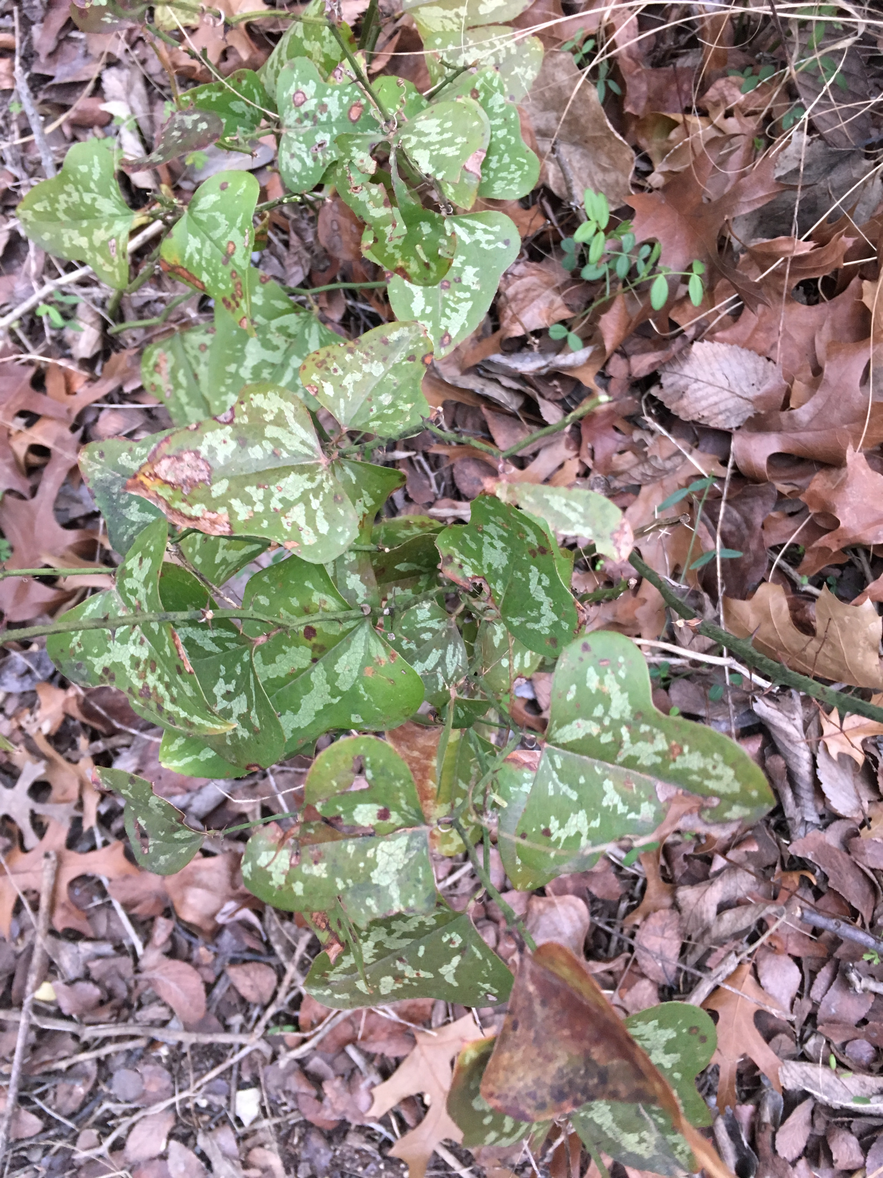 When we first moved in I discovered a pesky thorny vine sprouting up all over the yard. The exterminator called it “heart shaped briar”, but I couldn’t find any online references to such a vine in Texas that matched what I was seeing. Some more searching brought up Sawbriar, which certainly fits with the sharp thorns along the vine. It also has tendrils which help it entangle the trees and other sawbriar vines. When they all gang together they form a scratchy nearly impenetrable mass that is very difficult to clear. I tried to dig up the root node, to make sure the thing didn’t sprout again, and after digging down over a foot on the first one, I settled for cutting the stem off at ground level at every opportunity. I’ve mostly cleared the large grabbing vines from my paths, and I recently picked up a long handled weeder that does a good job breaking the stems at ground level. I’ve adopted the weeder as my walking stick.