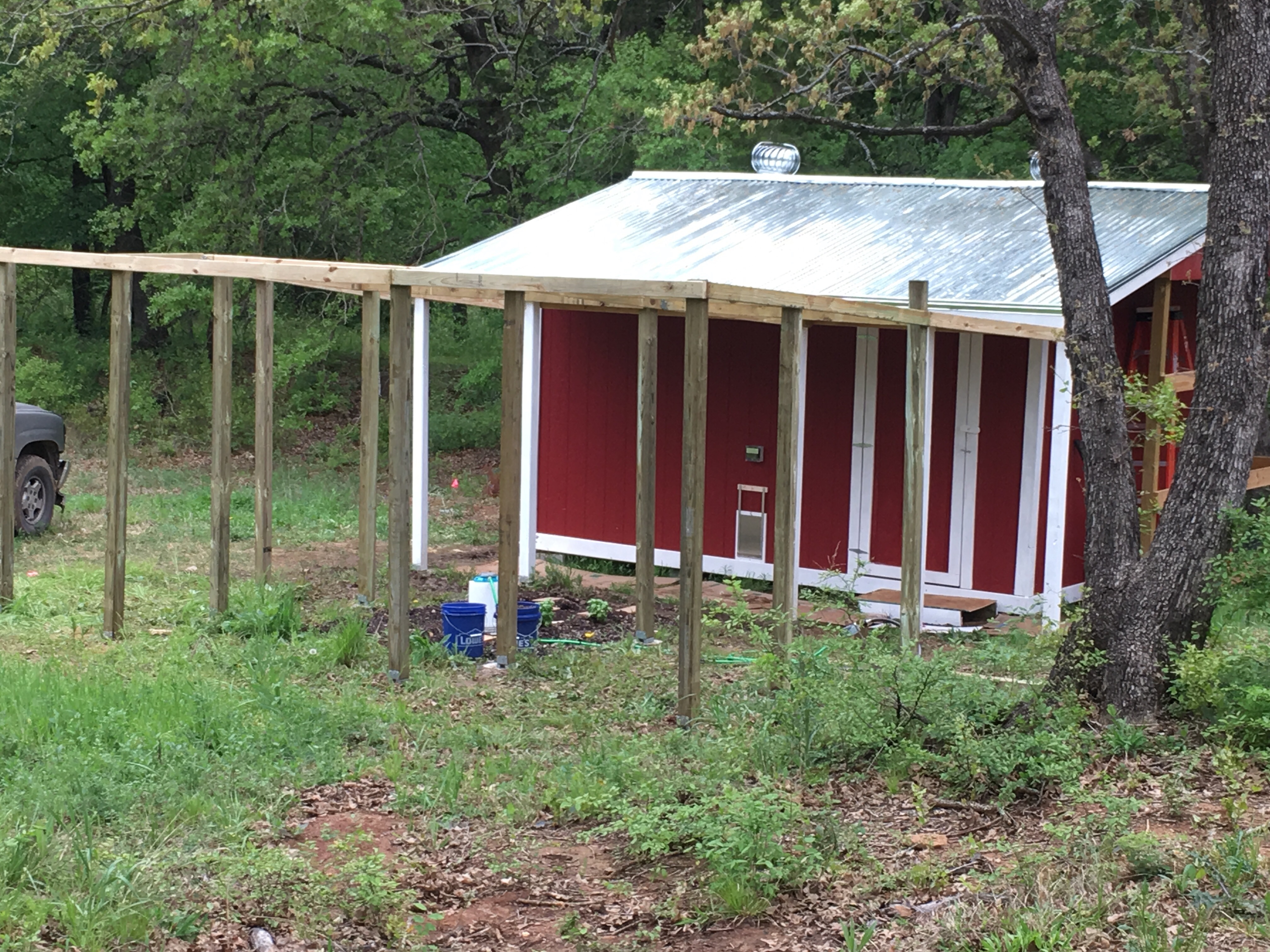 My husband and eldest worked together this weekend to get most of the framing up for the chicken runs!