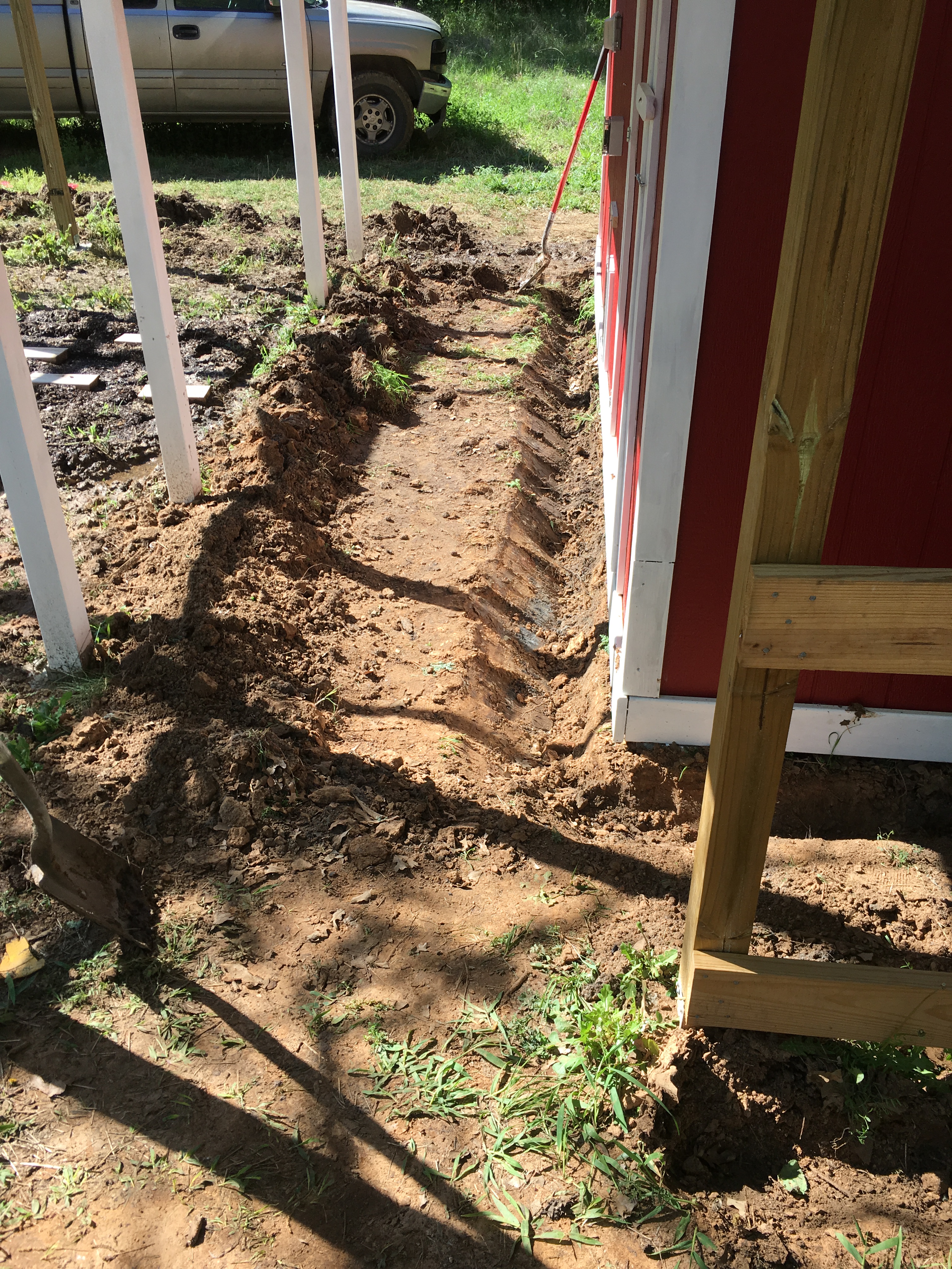 Well, at least digging trenches, which is how I spent most of my day today. We had rain this weekend, so the ground was soft and easier to dig, so I dug as much as a I could. I think the trench around the coop and runs is deep enough to bury hardware cloth to deter digging predators. I hope so. I’m beat. My health tracker says that I burned 2,900 calories today.