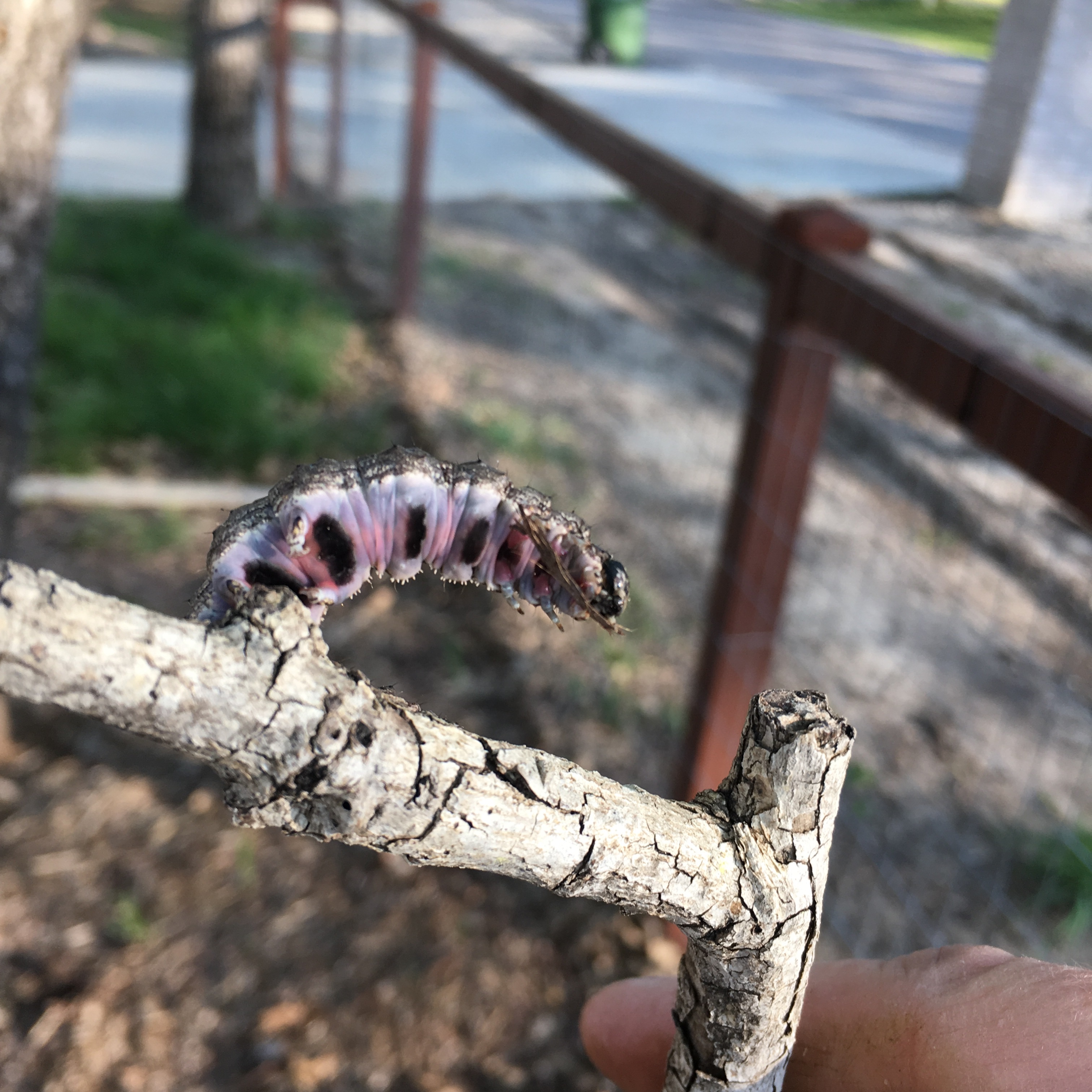 I found two of these interesting caterpillars recently. One in the mulch under a post oak tree and one climbing up the side of the house.