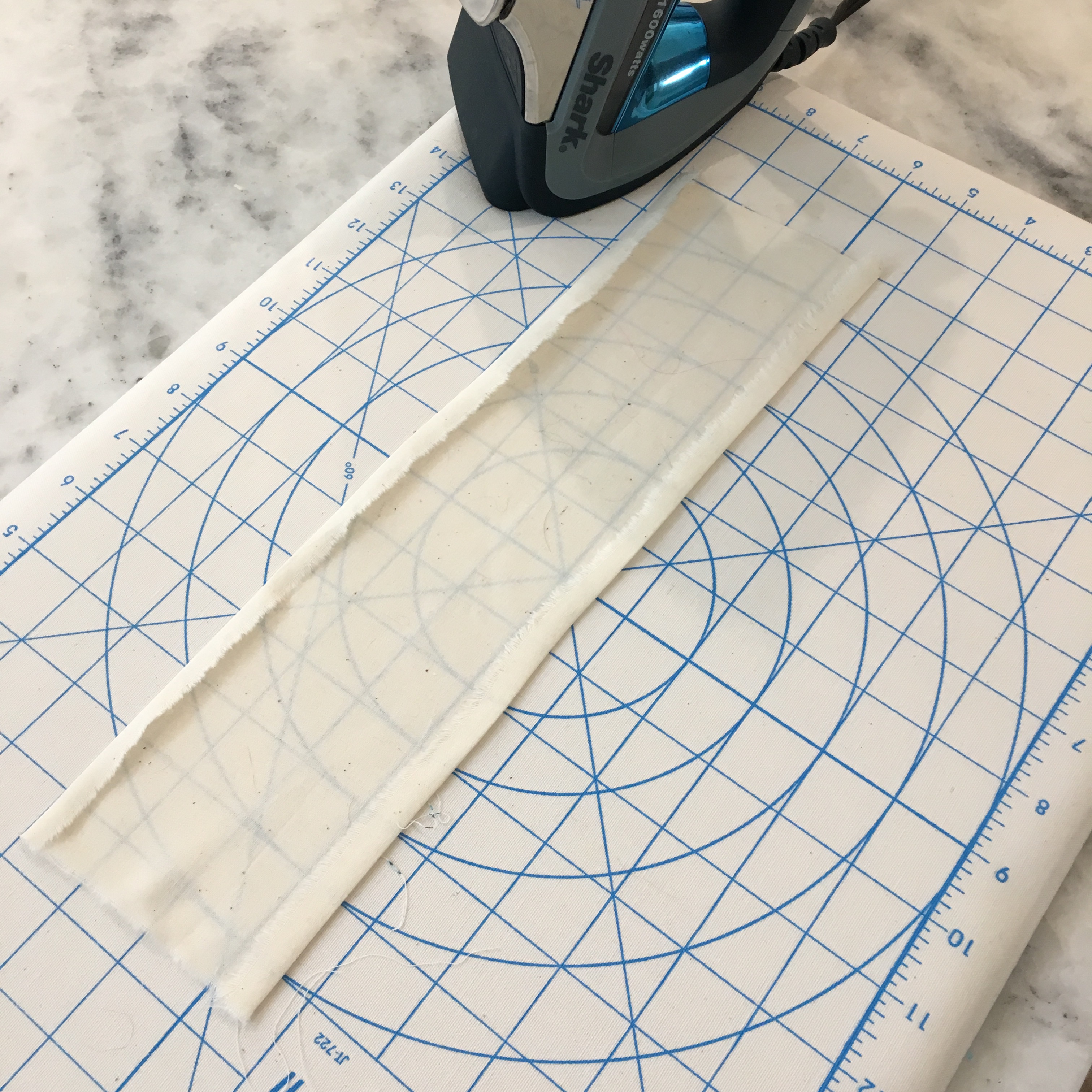Iron about 3/8” up the long sides of the fabric.