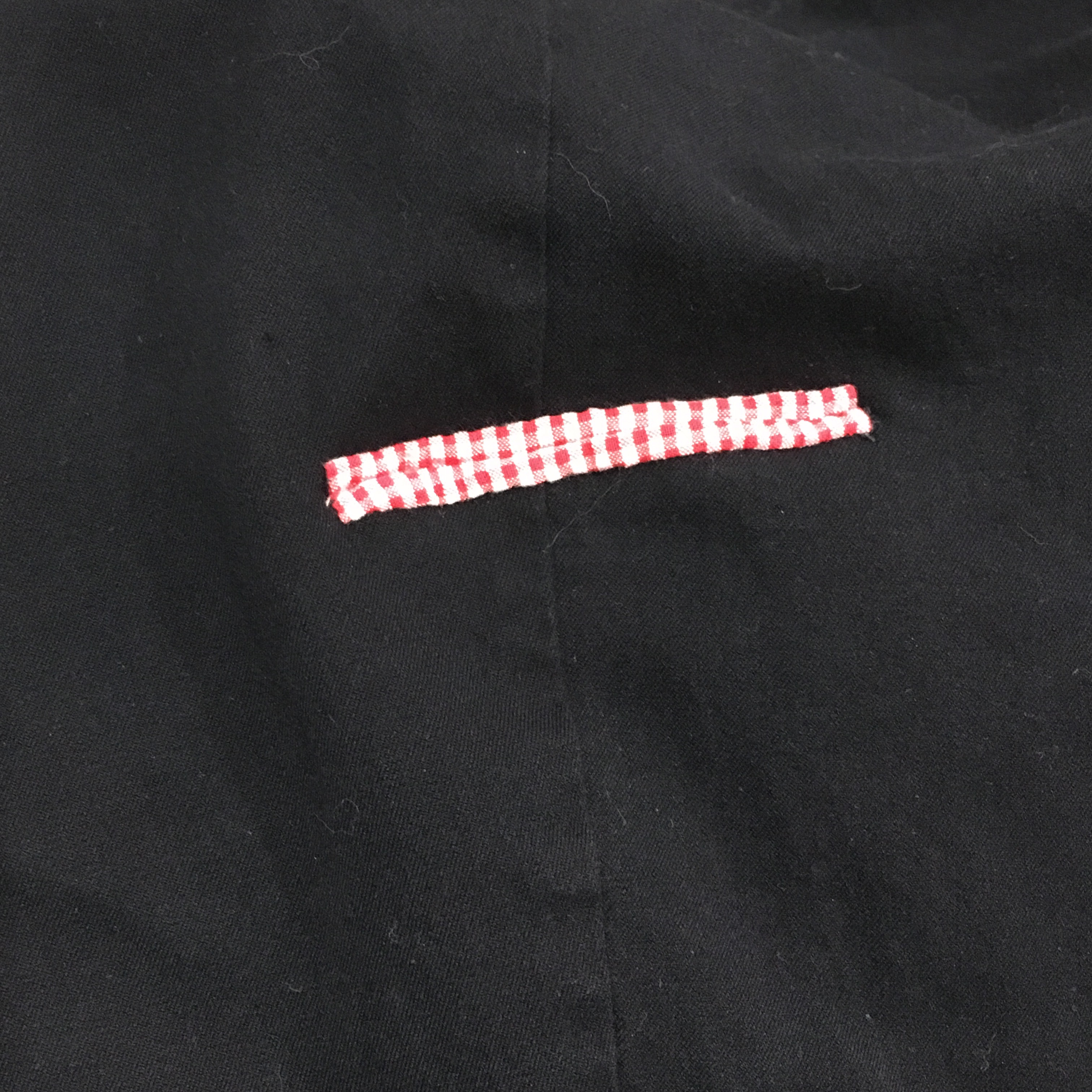I used a hidden stitch or hem stitch to attach the edges of the pocket material all away around. Make sure to add extra stitches at the ends of the cut to reinforce. Turn the garment inside out and sew the edges of the pocket closed. I used a whip stitch again. I saved this part until last because it is easier to adjust the folds with the sides of the pocket unsewn.
