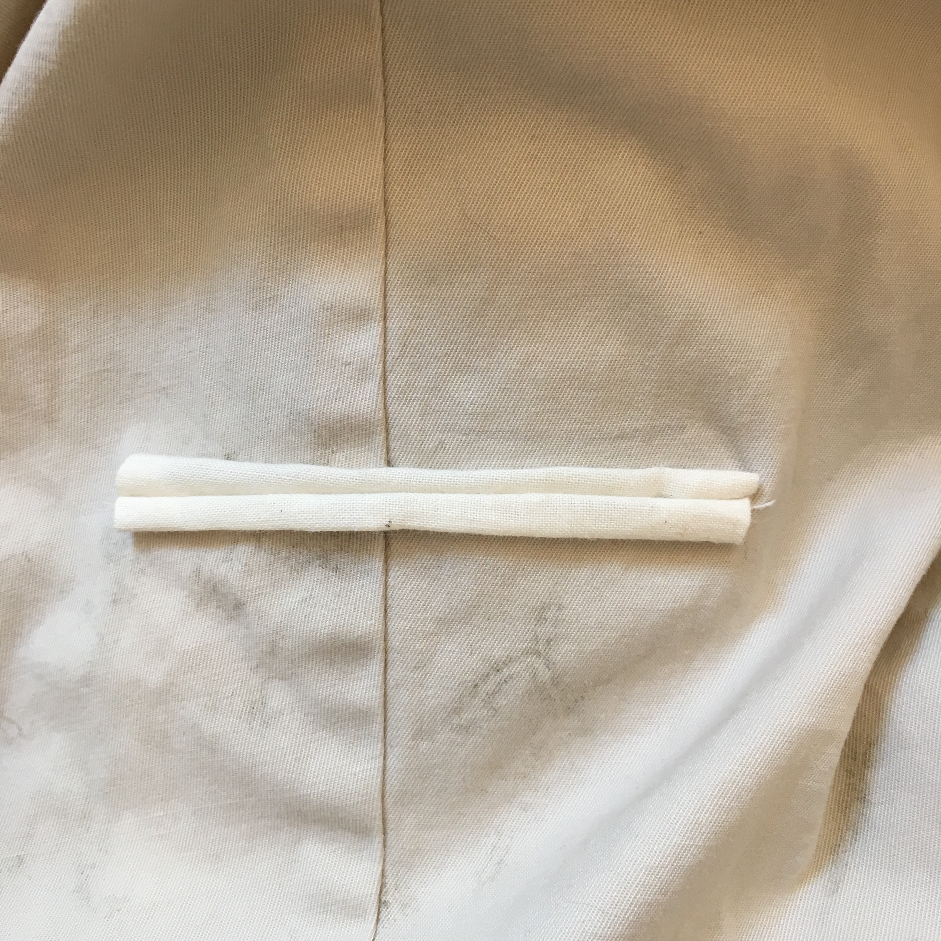 Put on the garment and mark where you want your pocket opening. Cut a slit the width of the ironed fabric.
