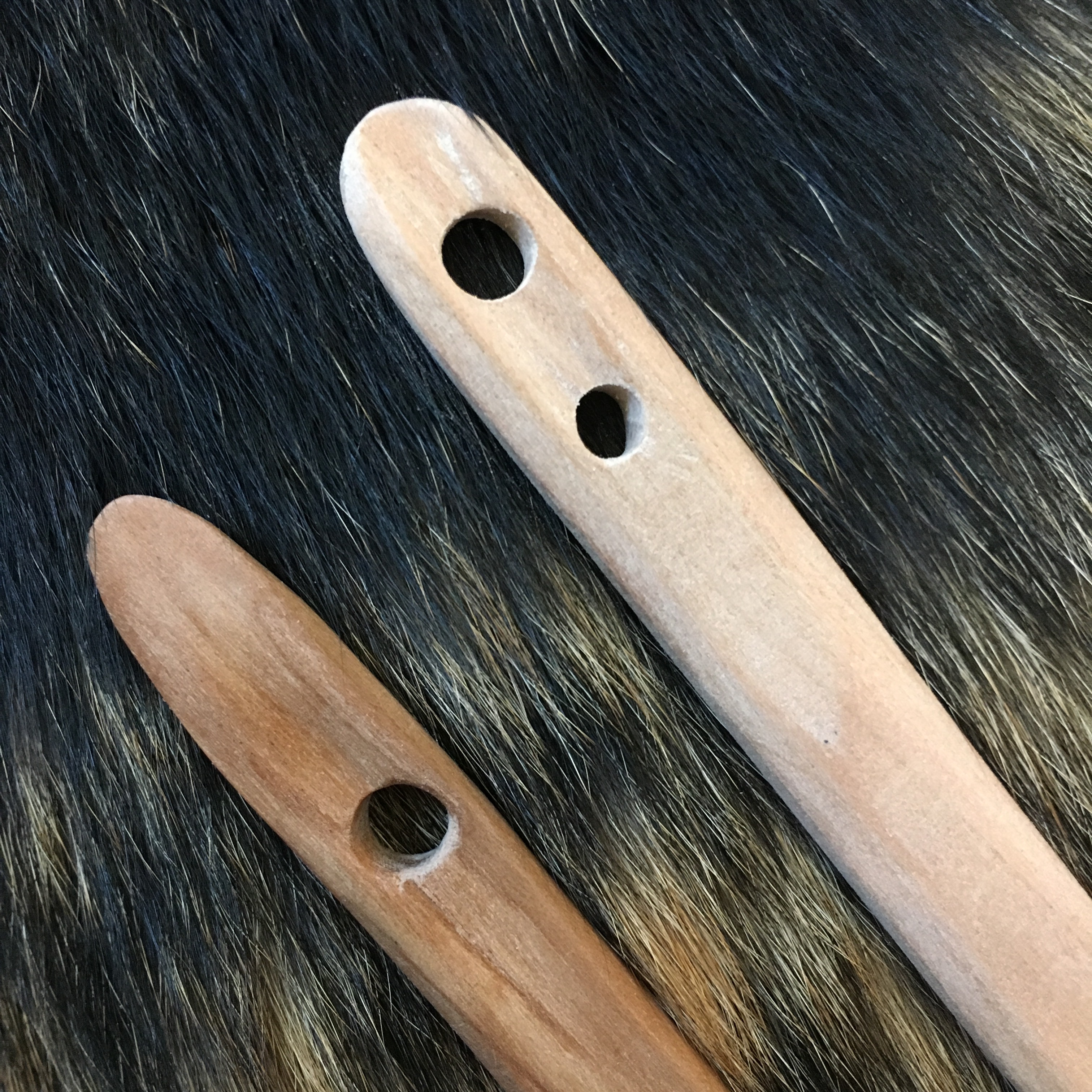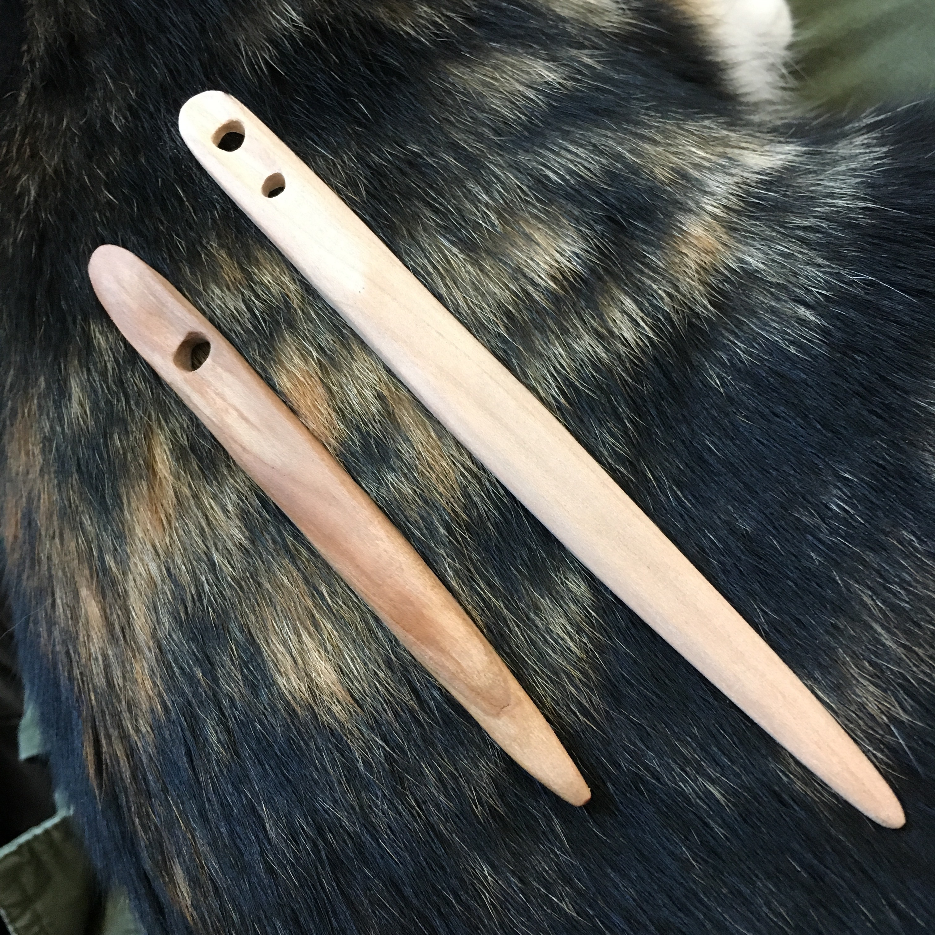 I made myself a new nal for nålbinding; a little longer and with two holes so I can work with longer lengths of yarn. I thought it was interesting that the previous nal darkened so much after just two projects. I made them both from cherry wood, both from scraps from the same plank.