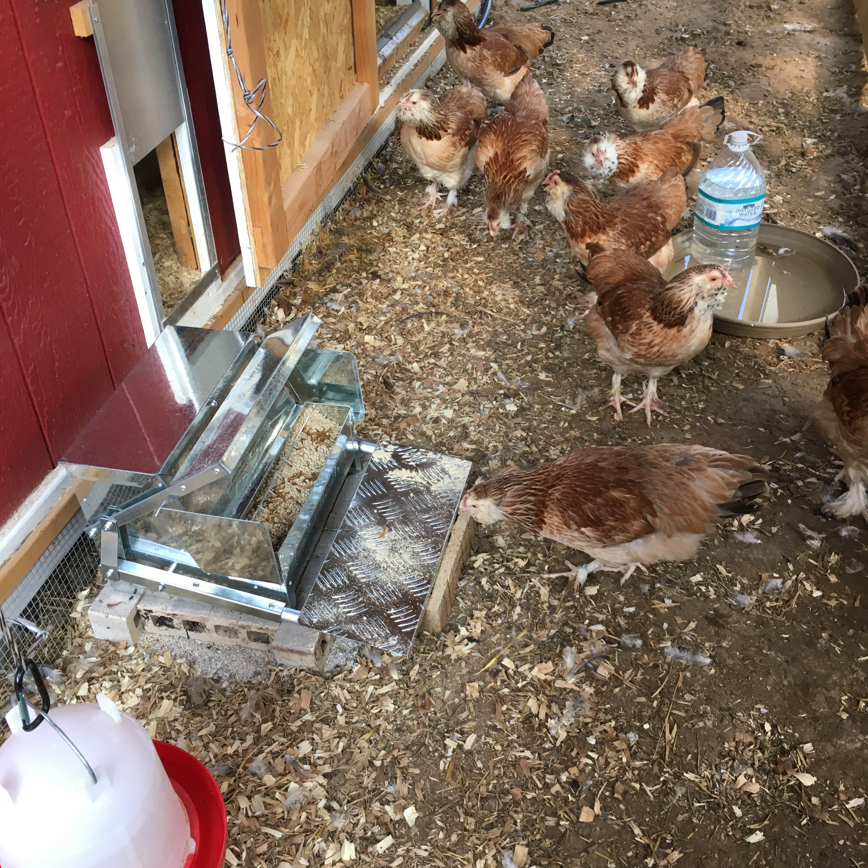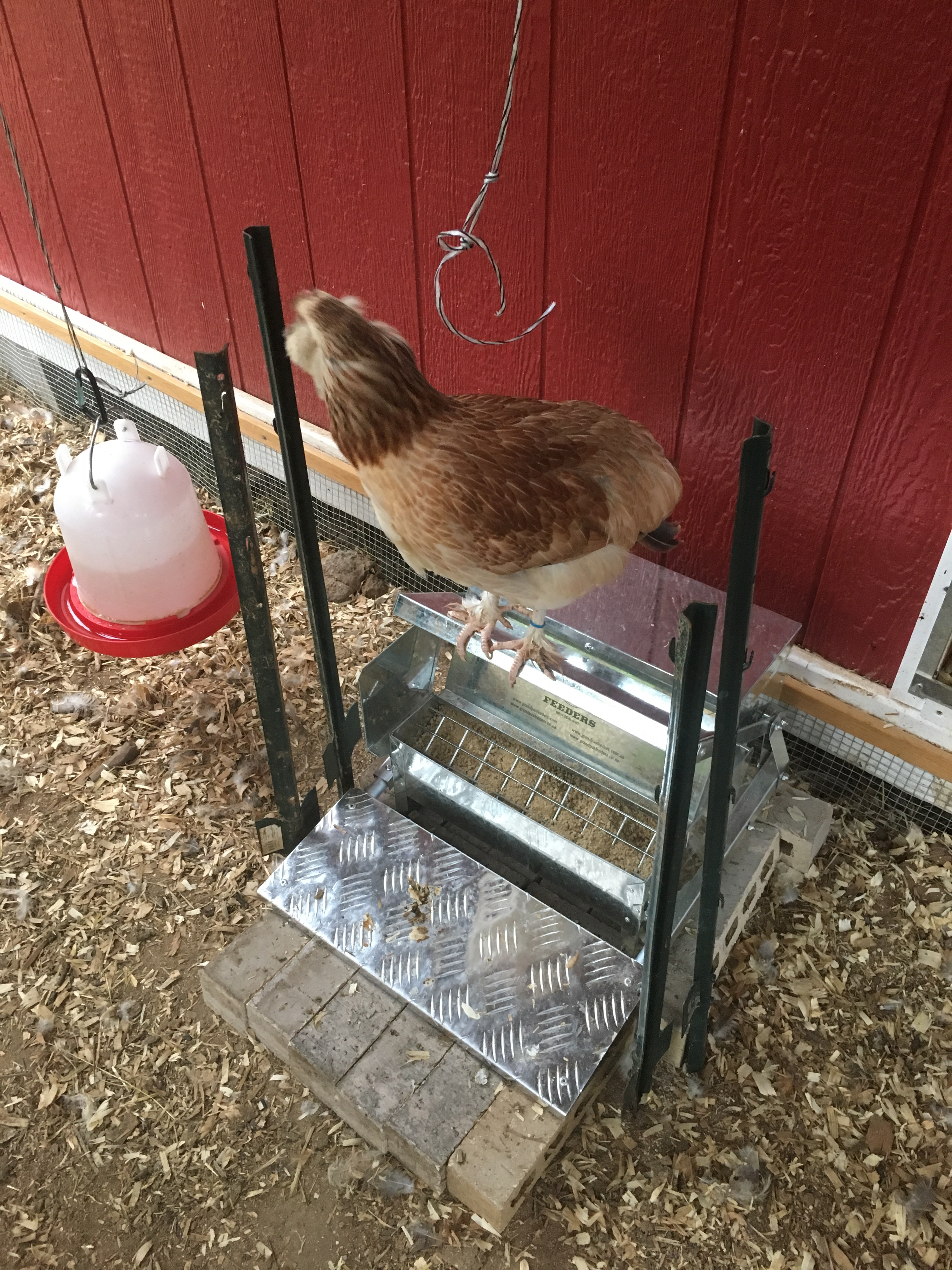 I bought a Grandpa’s Feeder awhile ago for the chickens, then found out they weren’t big enough to operate the opener yet. So it sat in its box for a couple months. Now at well over two pounds they are big enough! (They really only had to be 14 ounces. Oops.)