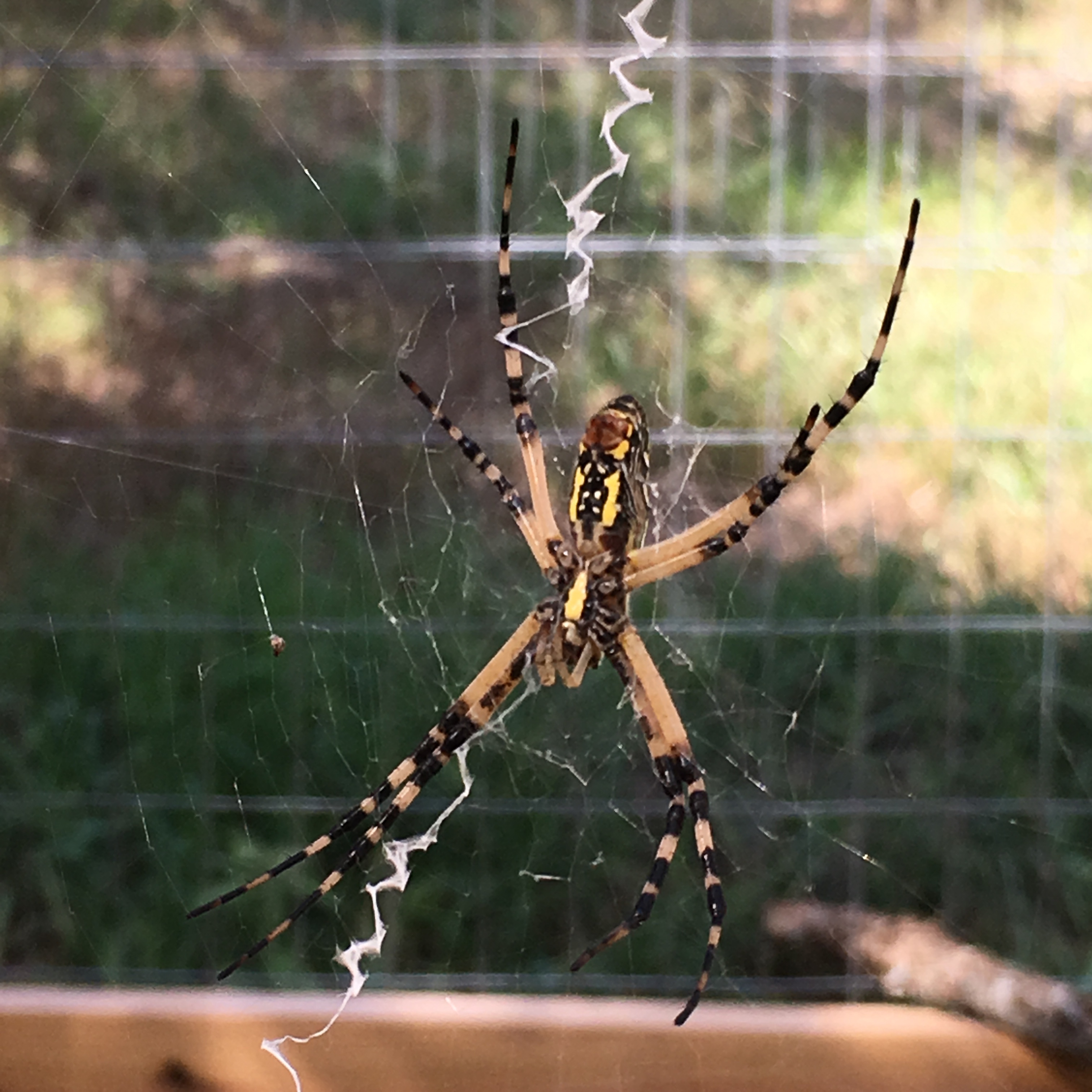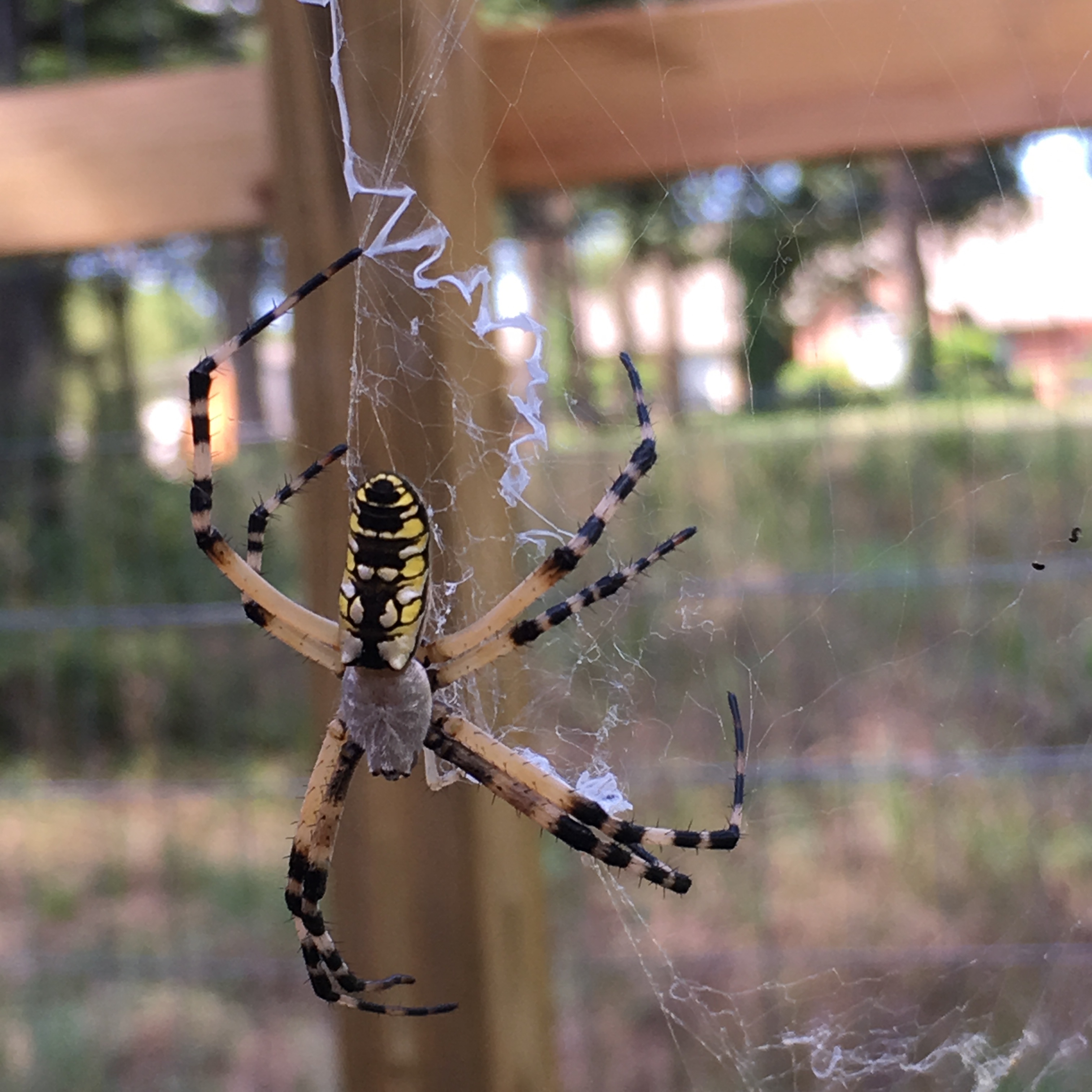 Snakes? No problem. Beetles? Easy peasy. Cockroaches? I now feed them to my chickens. Worms? Na, I bait my own hook. Spiders? Um. Great big yellow and black garden spiders? Even though they are non-aggressive? Heebie Jeebies. So getting close enough to this guy to take a picture with my phone was a personal act of bravery. Taking down her web by disconnecting the anchor lines and leaving her one line (as far away from me as possible) to retreat was cold steel. But see, I had to get to the other side of her web to put the roosts back up in the chicken run. It was for my chickens. And I’ve learned this technique for dismantling spider webs the hard way; I really, really hate walking through spider webs. Gack. We have so many, many spiders this summer. I have to keep telling myself that yes, there are a ton of spiders, but there don’t seem to be many flies. So the spiders stay, even if I have to pull up my big girl pants and deal with the gentle yellow and black nightmare.