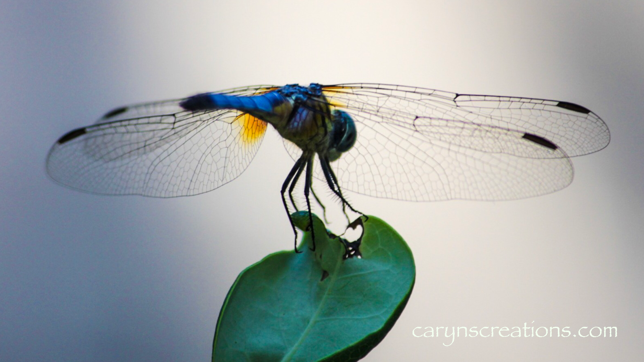 We have so many beautiful dragonflies around our house. Probably because of the pond next door, but I love that they are here. I dragged my good camera out of hiding because this dragonfly was perched in the late afternoon sun, and I couldn’t resist. I’m posting this picture because it seems unusual in the lineup of dragonfly pictures, with the coloring and composition, but I like the detail of the wings.