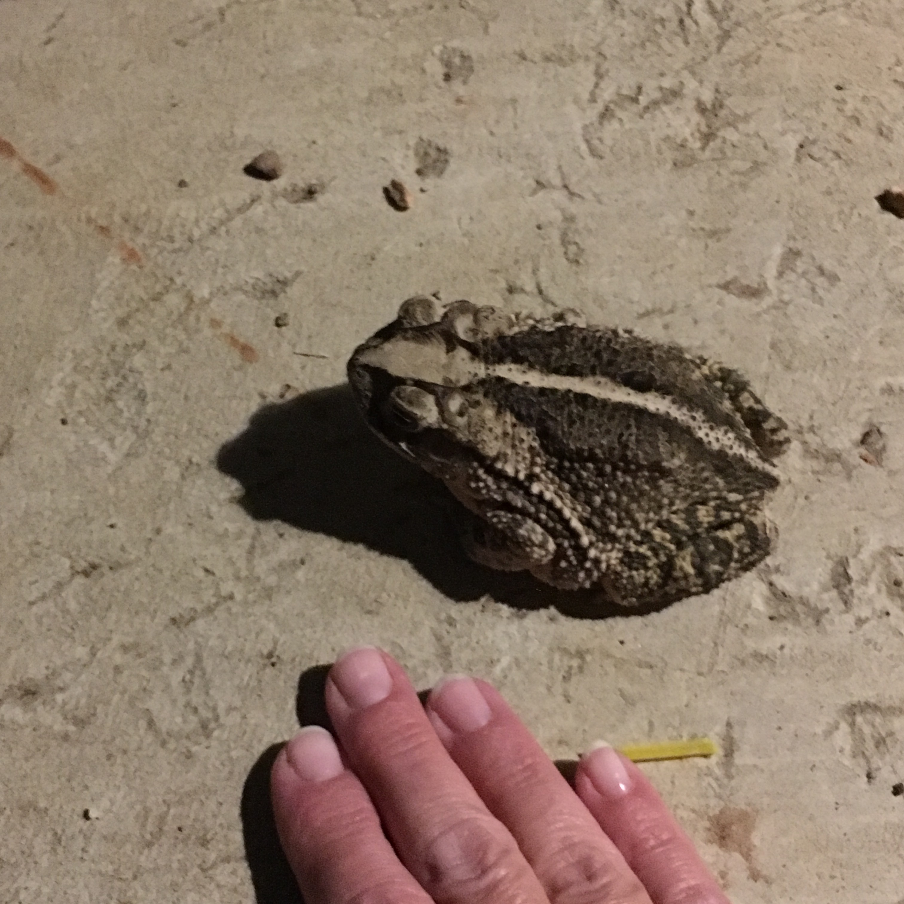 According to herpsoftexas.org, Gulf Coast Toads can grow up to 4 inches in length. So this must be a grandmother toad, as she is at the top end of her growth. (I’m not actually sure she is a she, but I thought in toads, females are larger.)