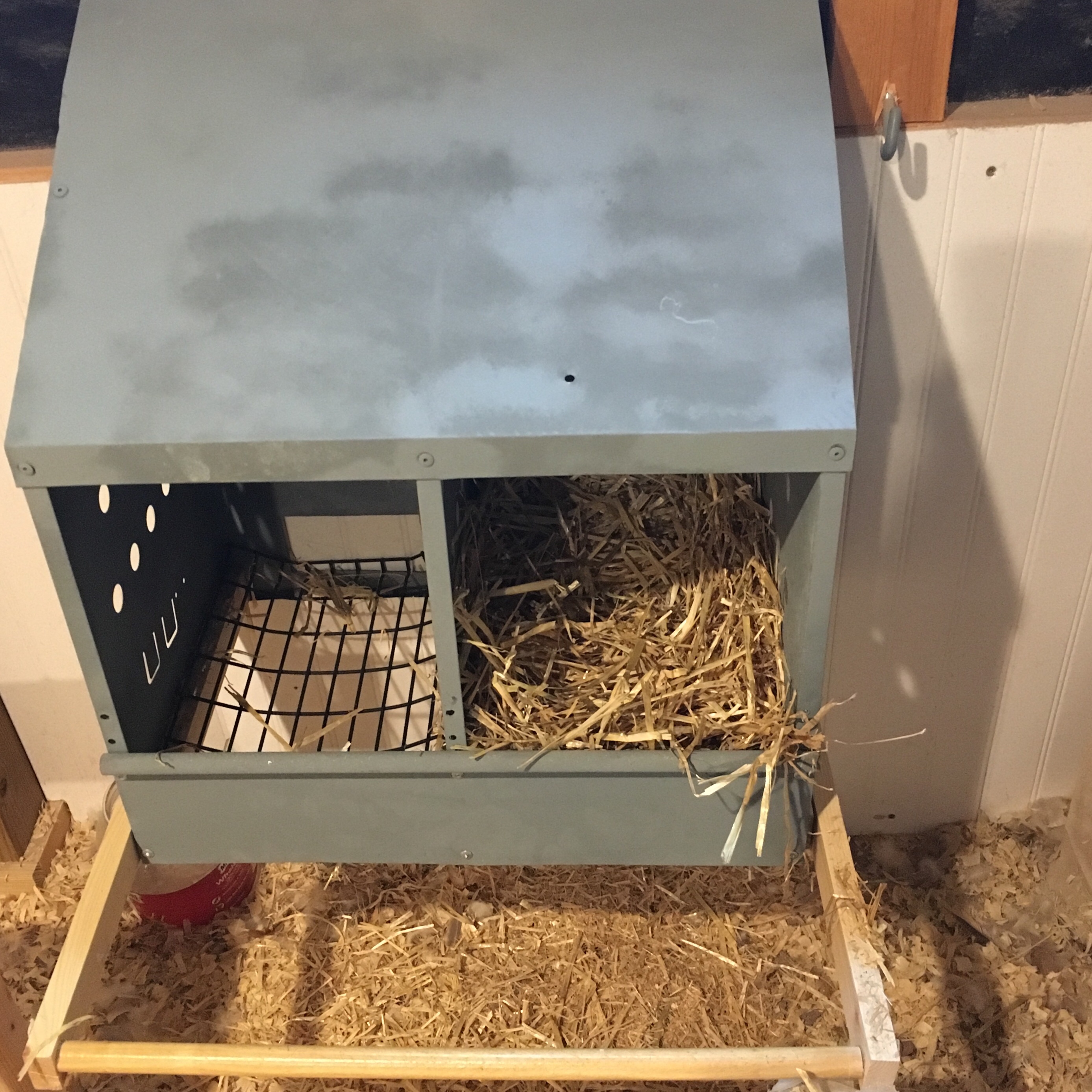 The perch to get onto the boxes is below the level of the roost, I put straw in each box and a little DE and dried lavender, and the opening is a little larger than it was before. So we’ll see if they use the boxes… in three months or so.
