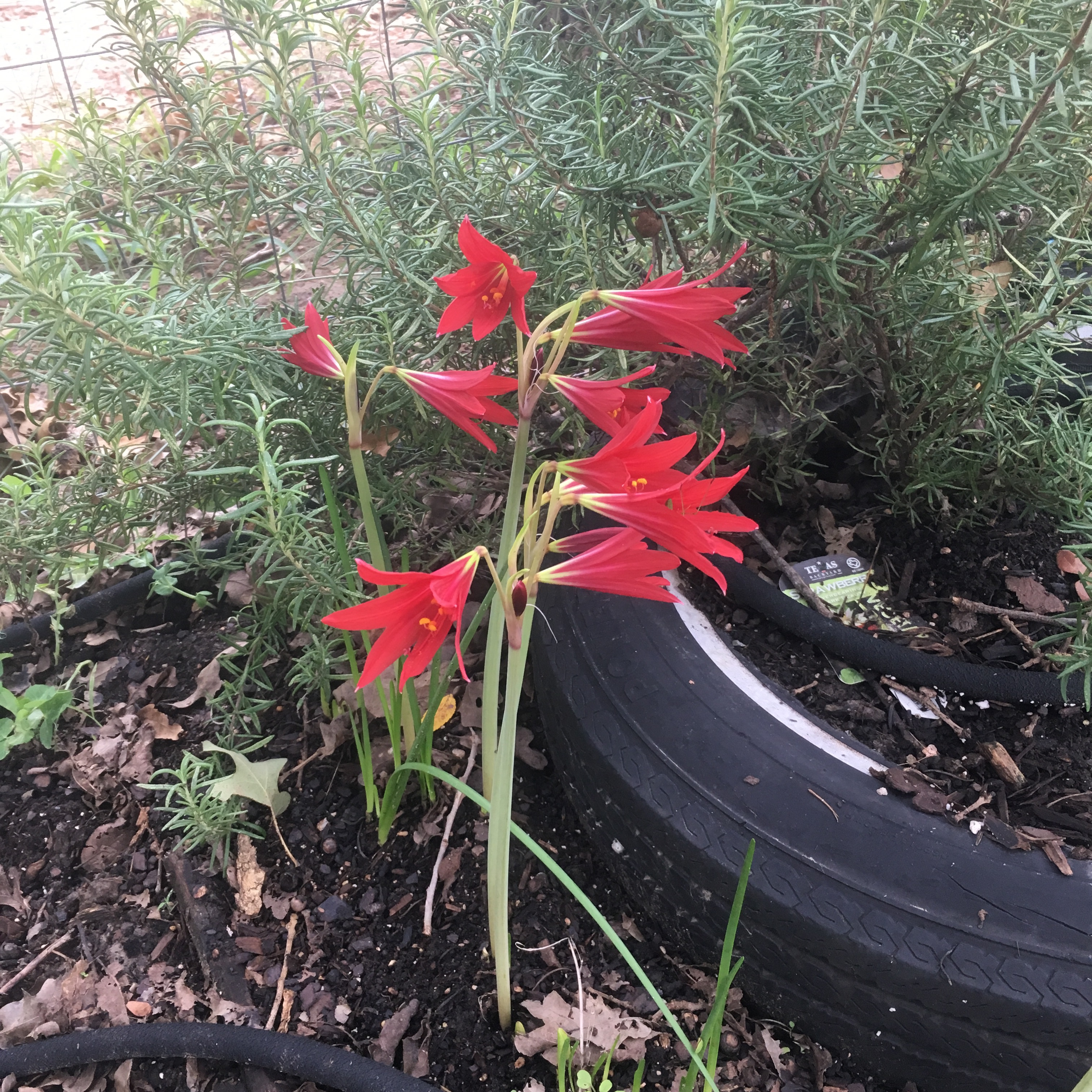 My school house lilies bloomed! I was pretty sure that I had killed them off when I wasn’t watering the area this summer (on accident). But they sprouted up from the bulb and flowered in just a few days – coordinating with the start of school. They are planted near my rosemary because I thought they were garlic chives. They stay because they seem to like it there.