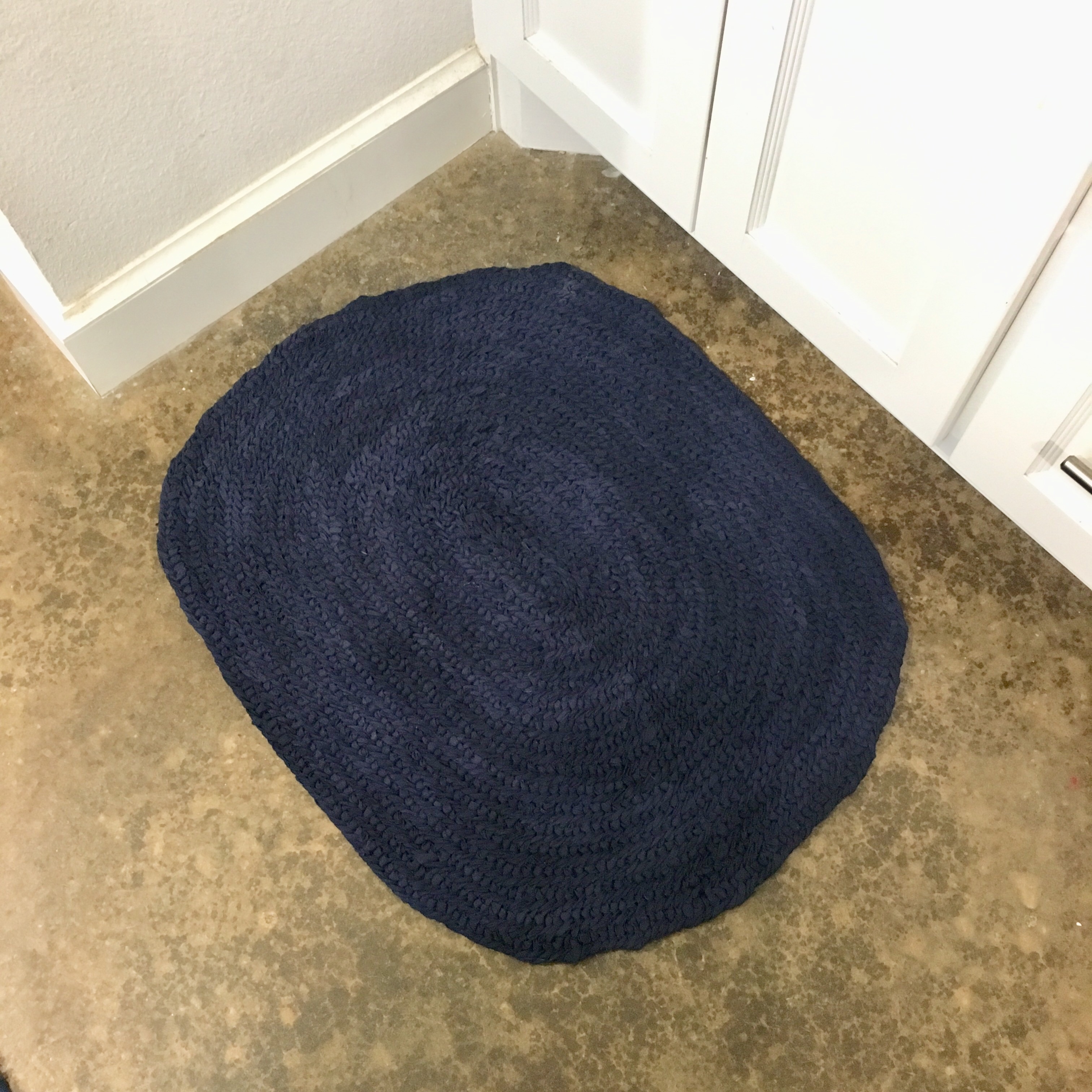 I decided to practice my nålbinding by making a rag rug from a fitted sheet that had worn out. I cut off the elastic, then tore the sheet into 1” strips. I wound each strip into individual loose bundles so they didn’t tangle together. Using the Finish 1+1 aka Oslo stitch, I worked the strips into an oval rug form. I was eyeballing where increases needed to go, so the end result is kinda funky. I had to block it (get it wet and lay it flat to dry) to get it mostly flat. Although it took me a month to make, I admit that I only did about three strips in a sitting. If I make another one with the top sheet, I’ll twist each strip, and evenly space the increases. I did find that I like to chain the increases, rather than stitch into the same stitch. I like the texture better. So lessons learned. And it will still keep feet from getting cold while someone is brushing their teeth.
