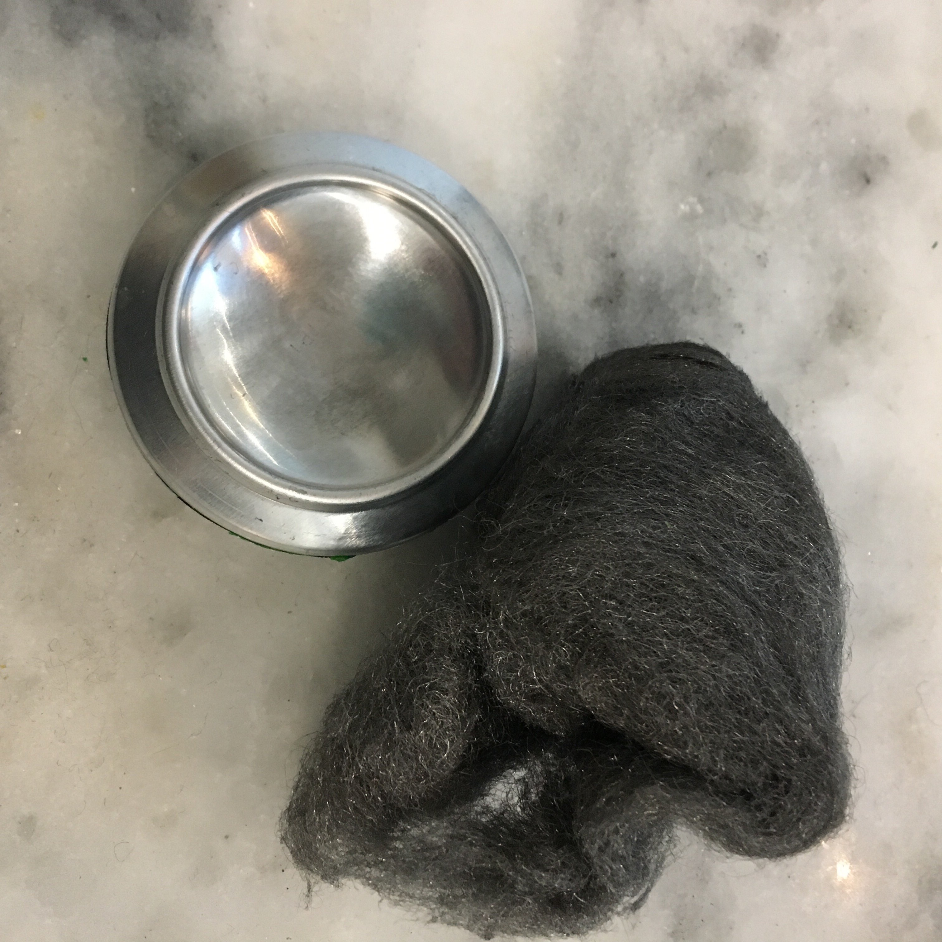 My little ceramic dish was OK for supported spindle spinning, but most of the support bowls I’ve seen (yes, on web searches and YouTube videos), are nice little round concave weighty things. Some are quite pretty! But I did notice that the bottom of an aluminum can is about the same size and shape.
