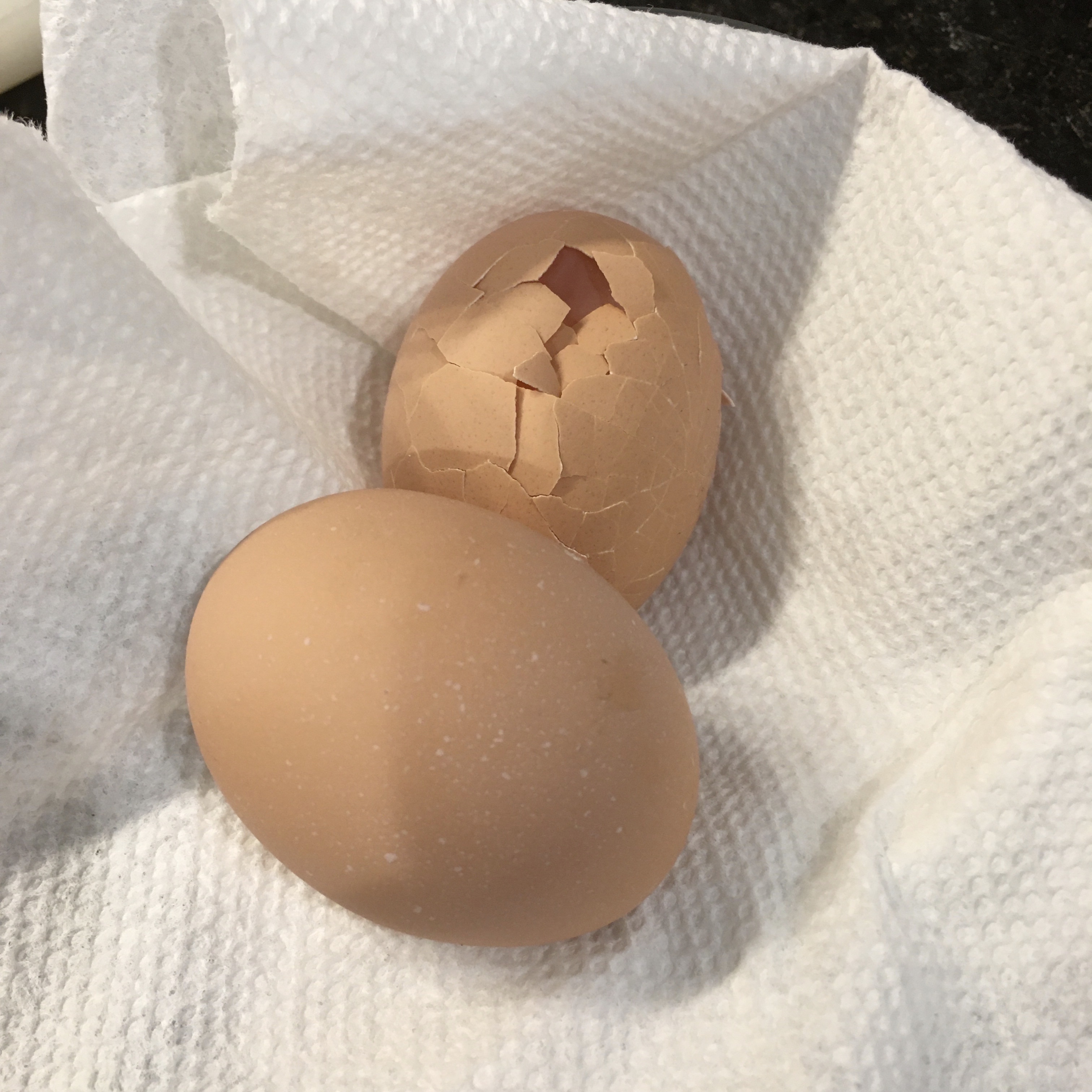 I’ve had a bit of a learning curve cracking open the eggs as well. I’ve found that I need to consciously pierce the shell membrane after I crack the egg or I have a terrible time with shell bits in my breakfast. Store bought eggs pour out of the shell as soon as it is cracked. Not so with these!