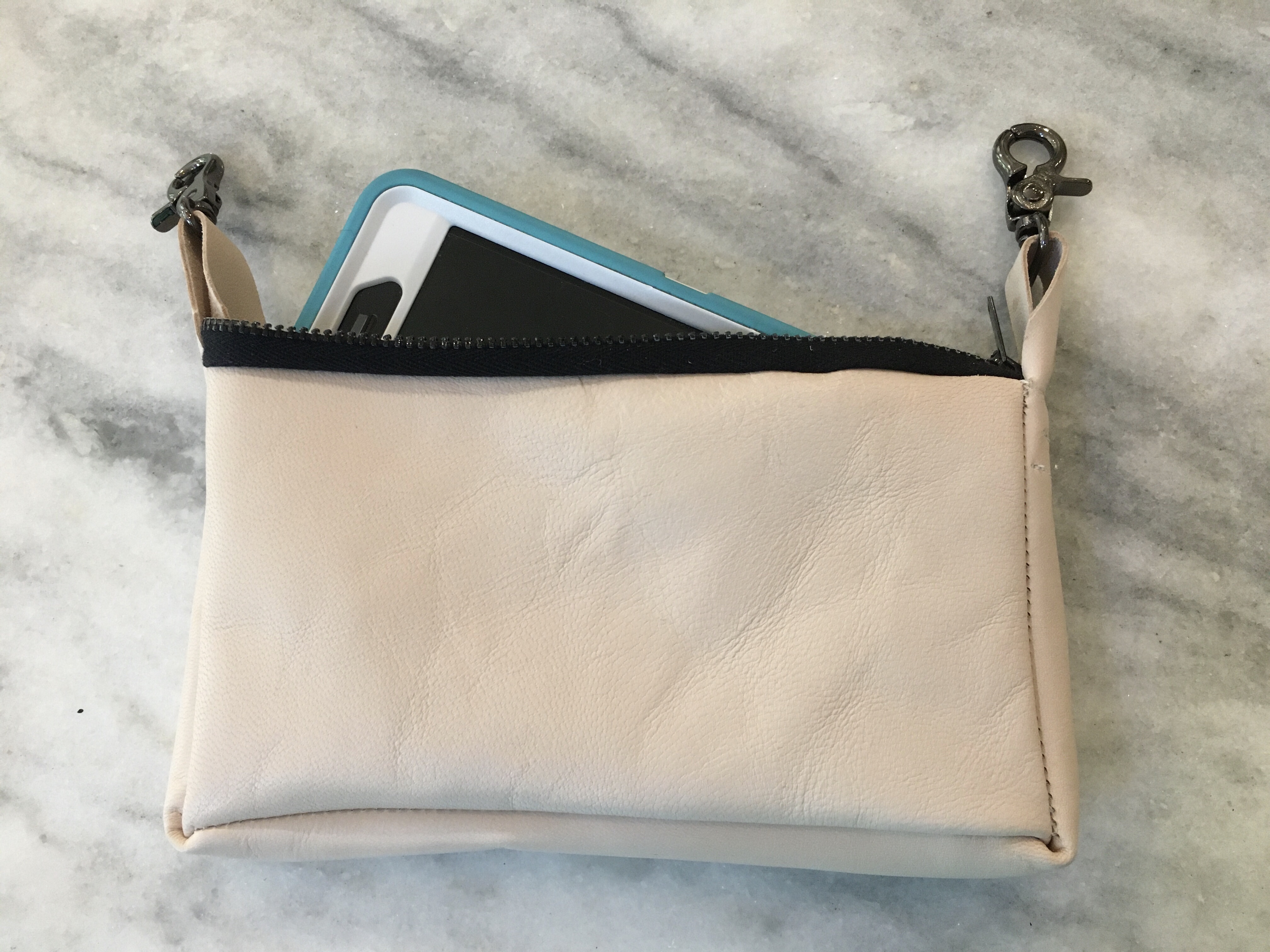 I bought some goat leather in natural so that she could decorate it herself (if she wants), and swivel clips and a heavy duty zipper.