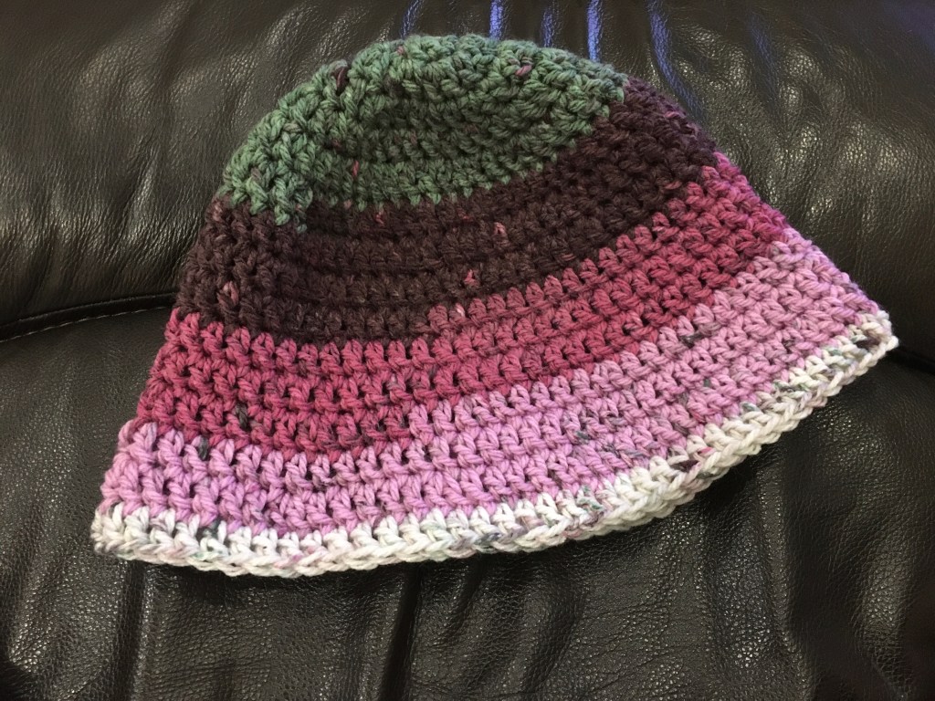 Yup, still busting through that stash. But I have to mix it up or I get distracted, so here is a cloche style hat based on my beanie hat. (American notation.)
