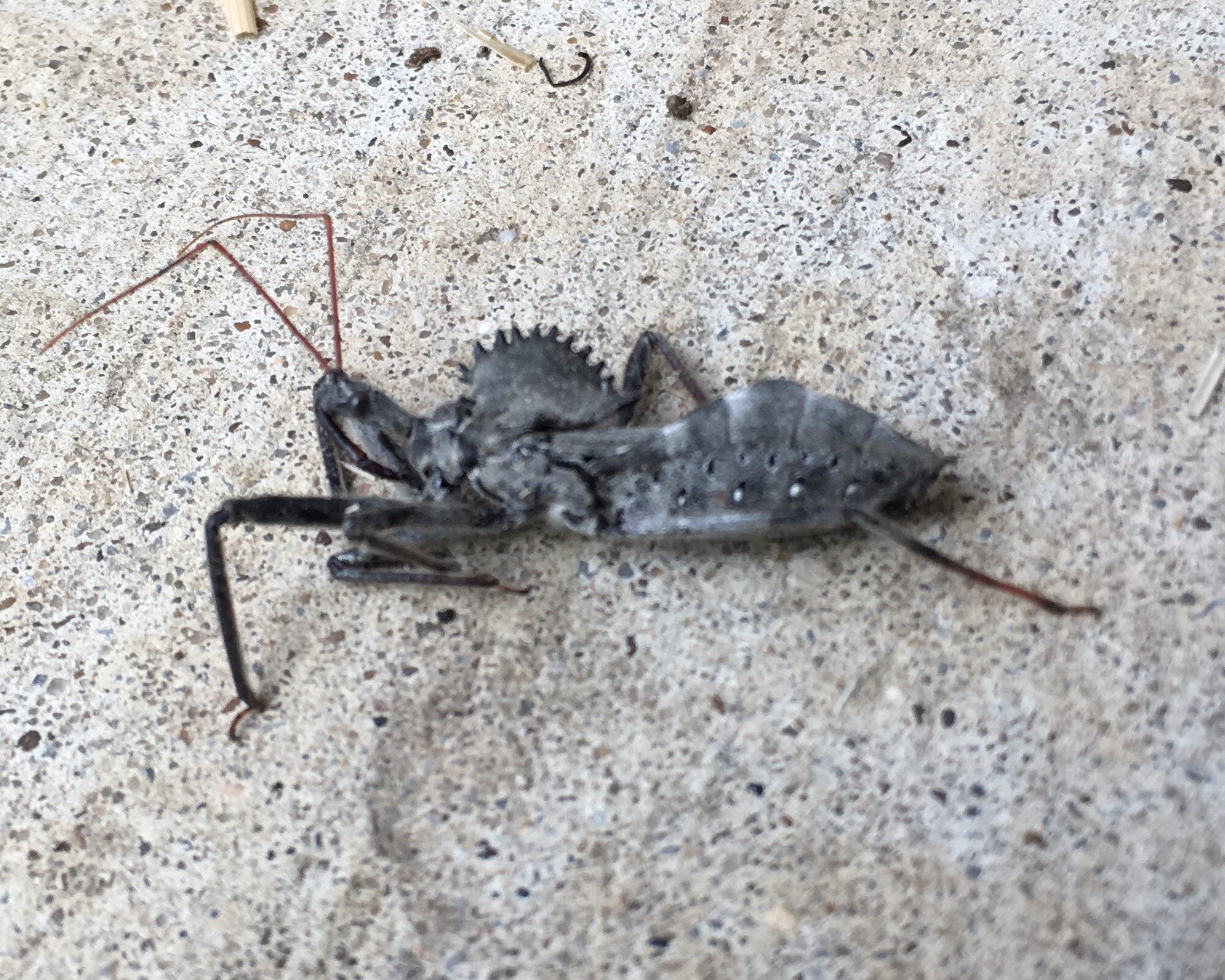 Found this guy on the front porch. iNaturalist IDs it as a Wheel Bug Arilus cristatus. I can see why it has that name. Very steampunk. Predates steampunk, though, so is steampunk very wheel bug?