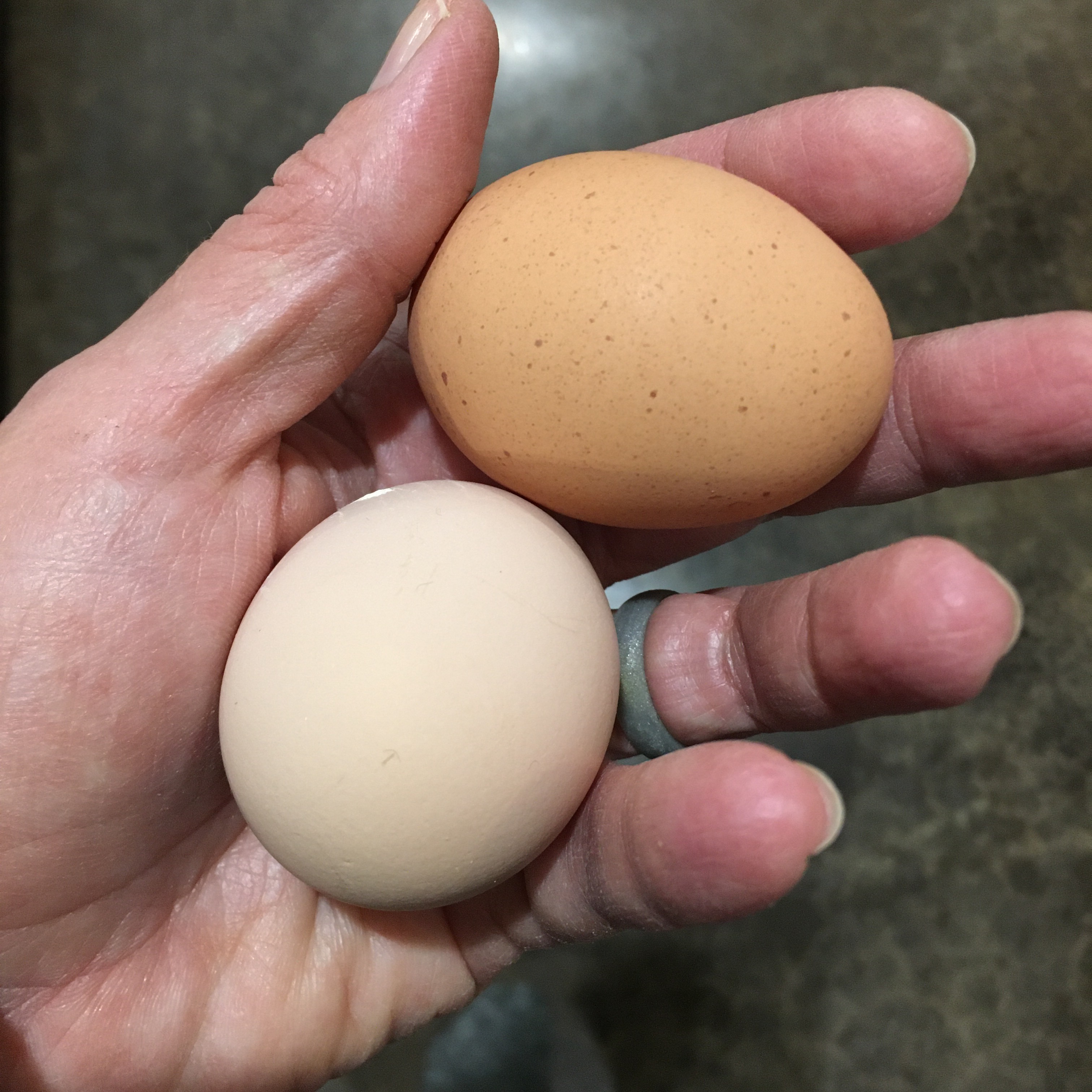I do have hatchery quality Faverolles, and a wide spread of egg color, but honestly, I like the brown eggs with the dark speckles all over best. The look like they should be wild eggs.