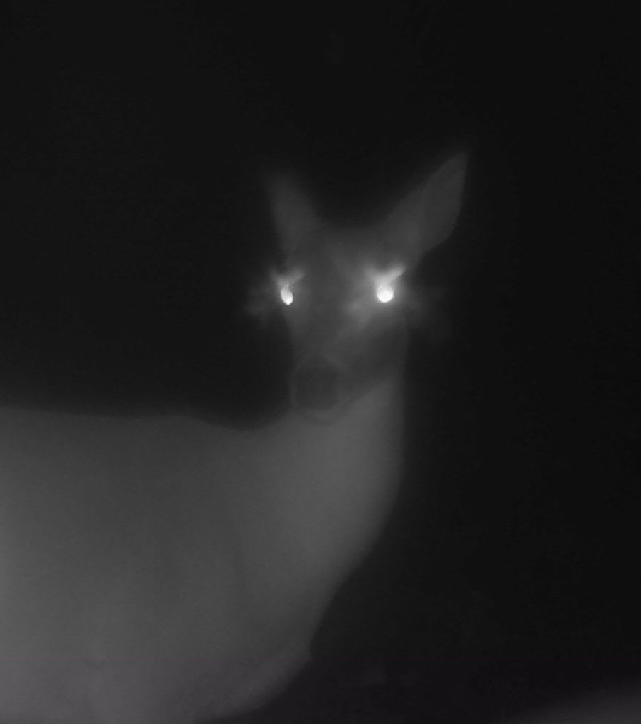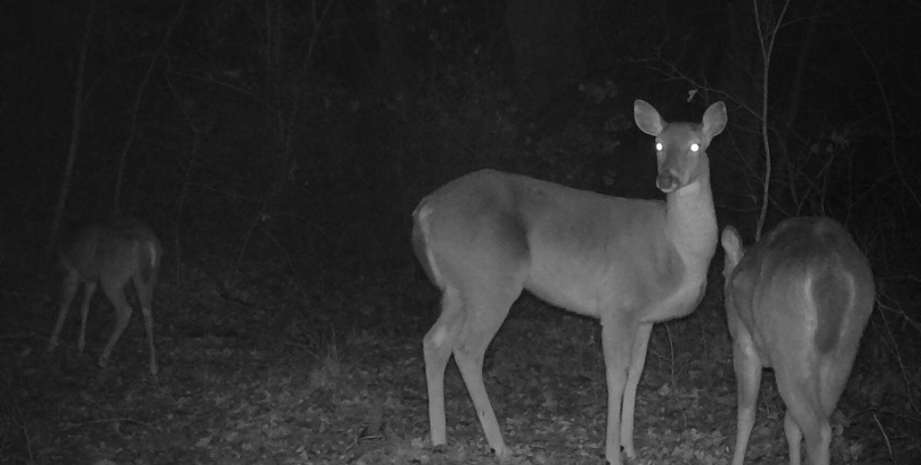 Here is another trail cam photo where the night vision and weather conditions produced an eerie effect.