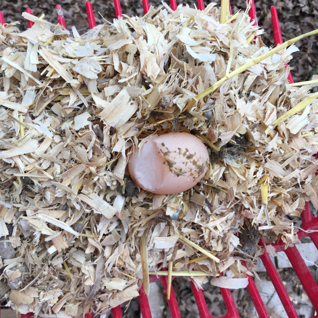 I found a shell-less egg under the roosts. It was quite disturbing: soft yet crackly. A little like the eggs where the shell has been dissolved in vinegar, but not rubbery. It was partially broken open in the shavings, but thank goodness it didn’t look like the hens had sampled it, just that it fell from the roost with no shell. There was an intact egg near it, so I think something was particularly stressful that day. I scooped it up with the manure rake and disposed of it. The internet and my books tell me that the occasional shell-less egg is not a concern. Ok.