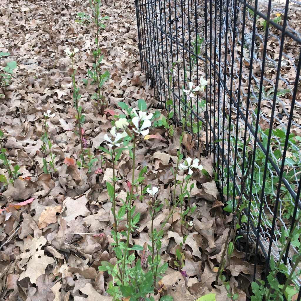 Arugula growing outside the fence