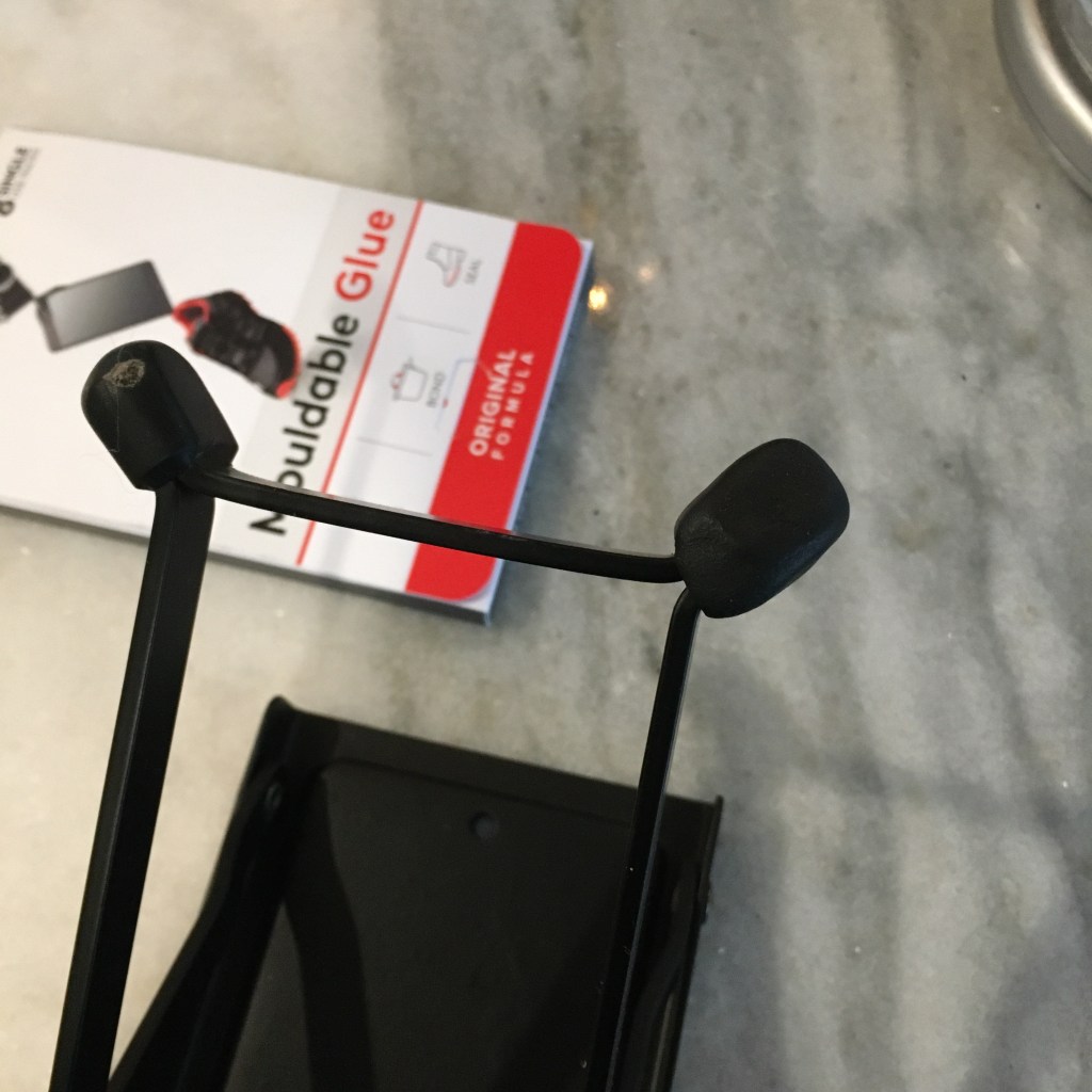 One of my readers told me about Sugru moldable glue (Thank you!). So I tried some to replace the missing foot. It works well! It is easy to shape, and after 24 hours it solidifies into silicone rubber with almost the exact same feel as the remaining feet. The stand is stable and doesn’t scratch the floor. Hurray!