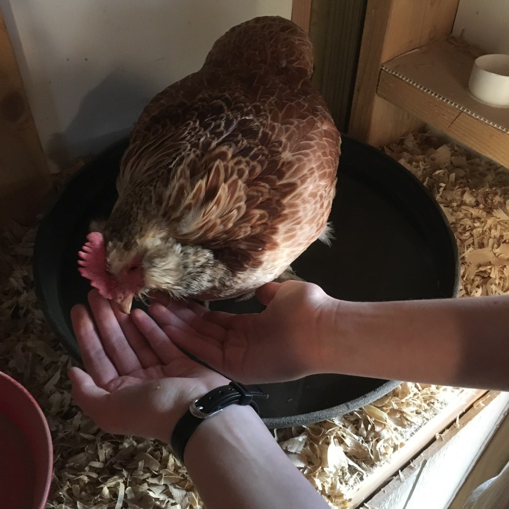 The hen with bumble foot still has swelling, so we set up an epson salt and warm water foot bath. My chickens really like foot baths, so this was not a hardship or scary for her! (Next time I find bumblefoot, this a soak will be the first step.)