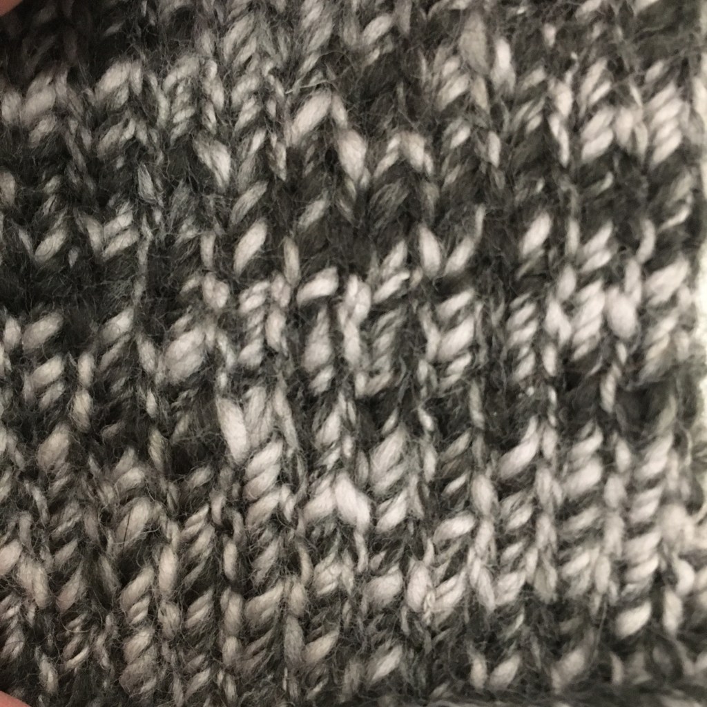 Since I am planning to knit, I made up some test swatches with various yarn scraps I had, as well as the new 3-ply alpaca. All the yarn was spindle spun, some with merino wool, some with alpaca, some plied, some singles. I found the the yarn with a Z twist knit up with uneven stitches, resulting in a fabric that doesn’t look balanced. The S twist, however, knits up nicely and the “V” of each stitch is balanced. The US 8 needles were a little small for my chunky 3-ply alpaca, and although the swatch was soft, it was not nearly as sumptuously soft as the swatch knit on US 10 needles. And oh is that last swatch soft; like cuddle on the couch, swatch against the cheek, sucking on your thumb kind of soft. It literally makes people say “oooo” when they hold it.