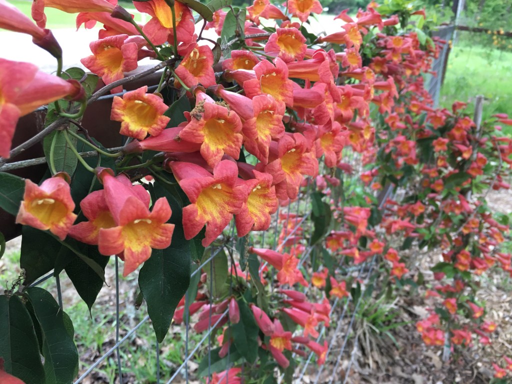 I no longer need to have spring flower envy for my neighbor’s beautiful bluebonnets, Indian paintbrush, and forsythia. We have our own flowers! And it really isn’t surprising that it is all the shade flowers: columbine and shamrock. Our property is very shaded. We have crossvine too, which does fine in shade, but better in sun. We do have some honeysuckle blooming, some speedwell, and a daisy that my youngest picked out two years ago that turns out to be a perennial. It will be interesting to see how the meadow does. I seeded bluebonnets, but we had only a couple flower this year. I didn’t reseed any other flowers, so we are looking to see what reseeded itself. The columbines in the front bed have done a great job of reseeding, and may manage to take over the whole bed eventually, which would be awesome.