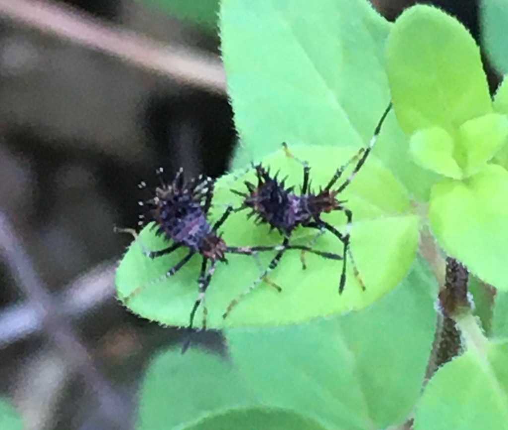 These little guys may be leaf footed bug nymphs, and were hanging out on the oregano.