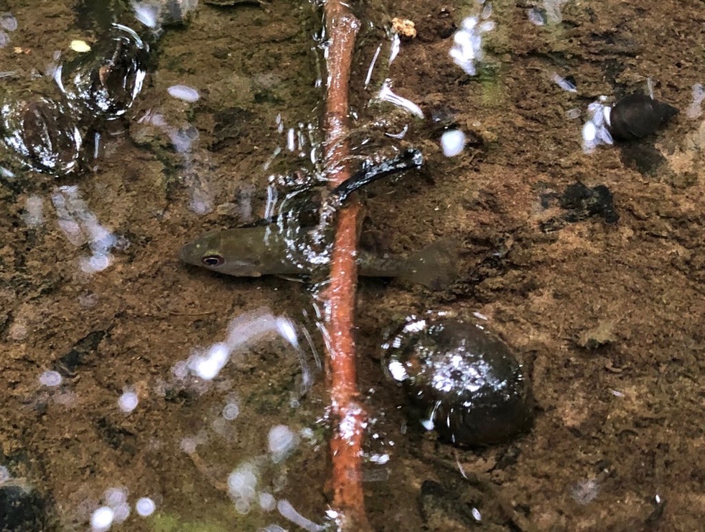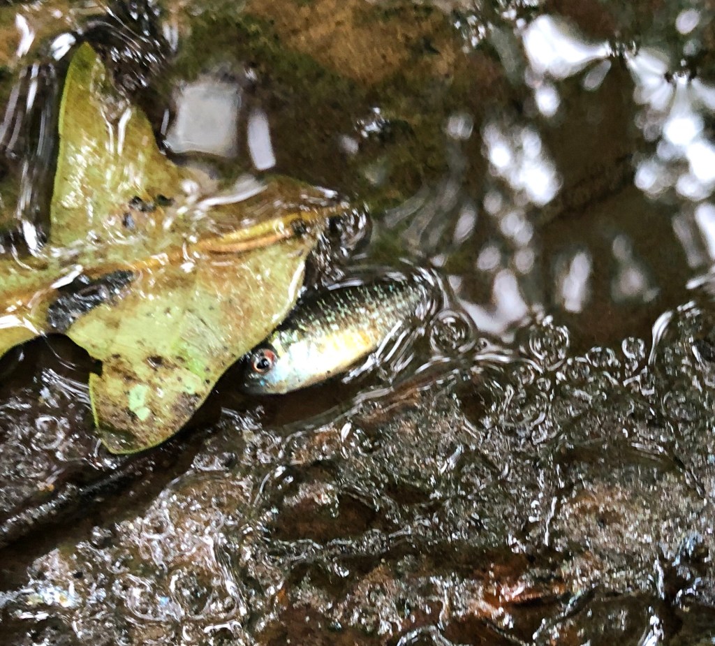 So my eldest was taking pictures in the back woods for a school art project and found fish in the tiny stream! I’m not sure how the raccoons haven’t caught them; there isn’t but a couple inches of water. In fact, as she was looking, one of the fish beached itself trying to get away. She helped it back into the water.