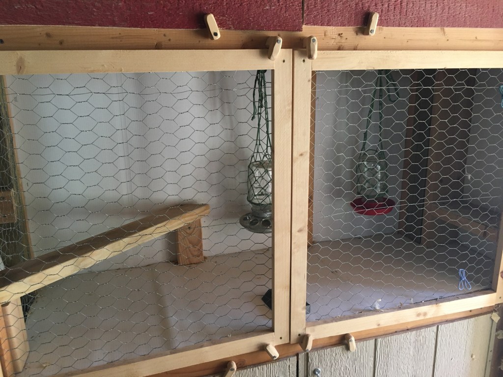 Reused nest boxes: I was worried about reusing nest boxes that I bought on a corner out of a truck. Not my most brilliant purchasing decision, but it worked out OK. I cleaned the heck out of it, gave it a new coat of paint (that worked with the galvanized steel), added a roost bar, and installed curtains. I was also worried about the small size, but a few of my chickens do squeeze themselves in there to lay occasionally.