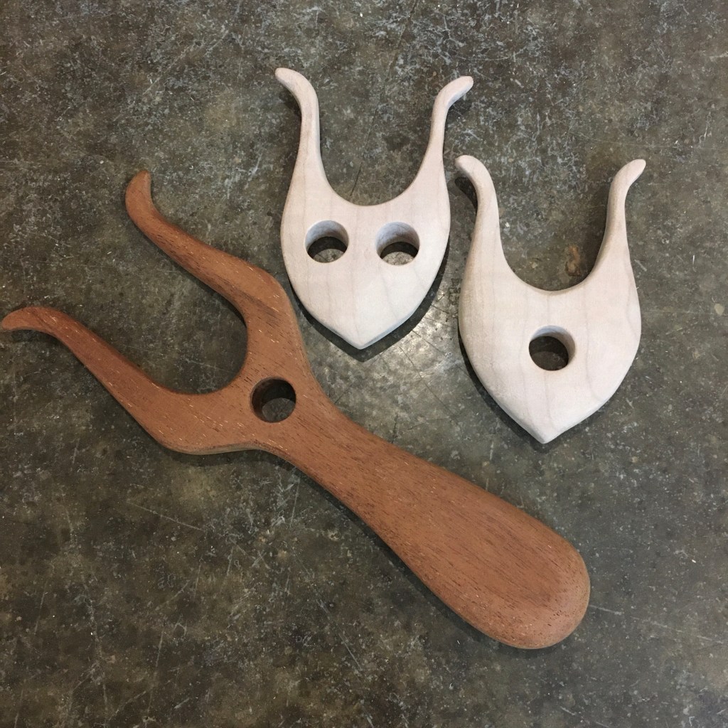 This is the best Lazy Kate I’ve made so far. It made plying easier as I didn’t have to fight the tool the whole time. The angle of the holes worked great, letting the spindles spin, but not spin out of control (I’ve seen other designs that use elastic or wrapped string to provide tension). Since it passed its test, I’ll give it a nice polyurethane clear finish!