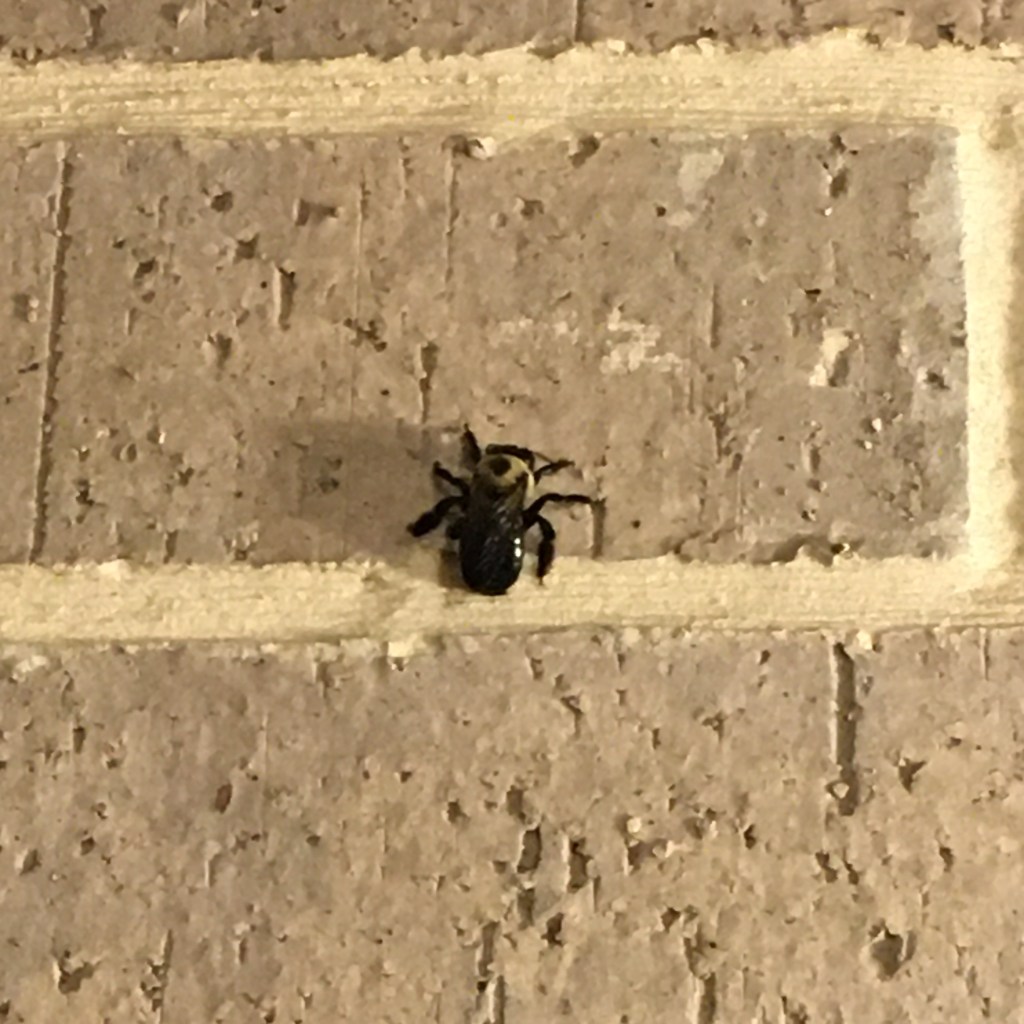 The rains have finally come, and our poor industrious bumble bee, who has been diligently pollinating the mist flowers, took refuge from the deluge on the wall of our porch.