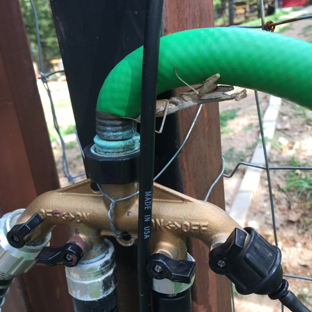 That is the biggest praying mantis I’ve ever seen in the wild. Rather than water my plants now and put my hand anywhere near her, maybe I’ll just come back later. Yes. Later. Good hunting.