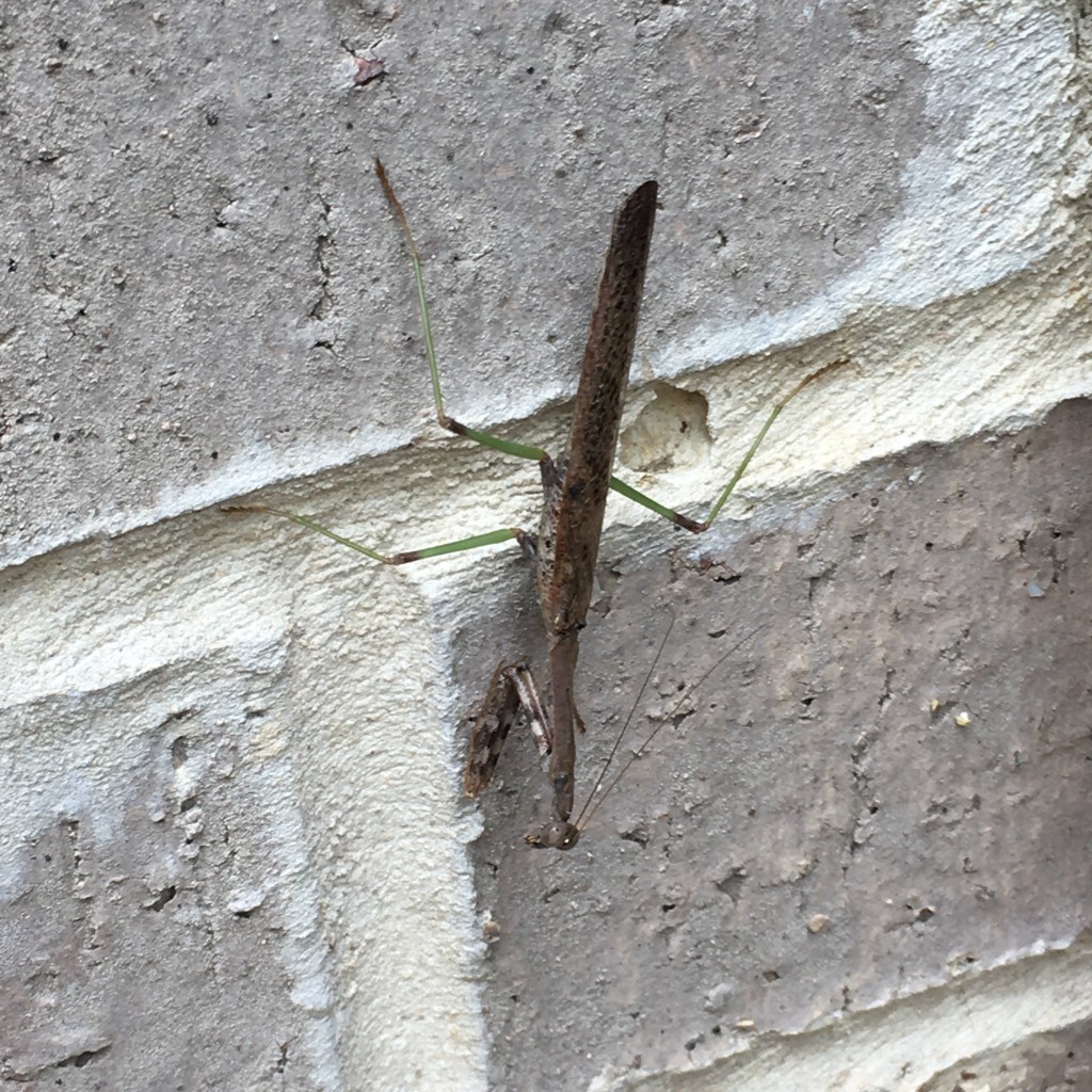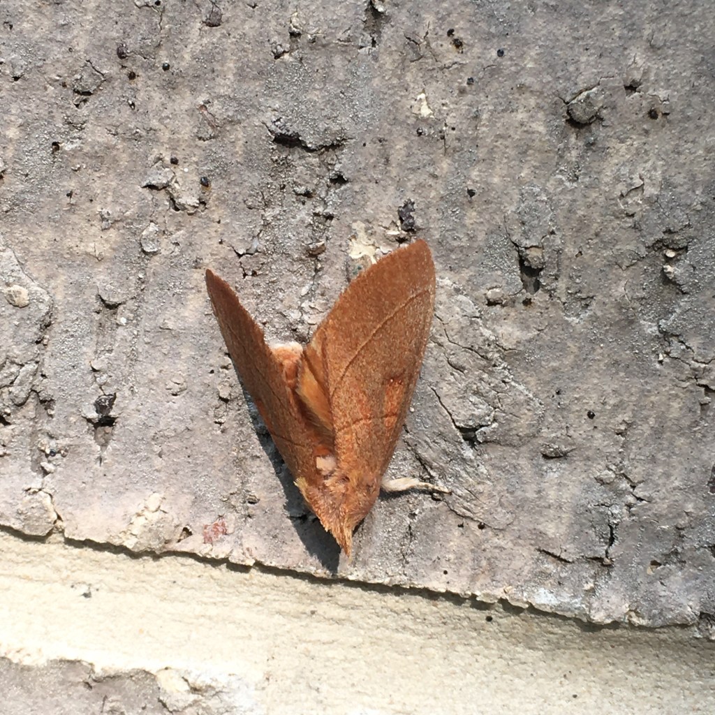 Here is another insectile predator: the praying mantis. This one hanging out on the house isn’t nearly as large as the mantis guarding the water station the other day, but still a nice specimen. He was eye balling a white-dotted prominent moth. The moth also has an amusing scientific name: Nadata gibbosa.