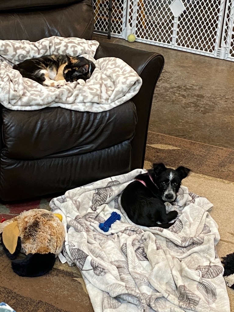 Our little Missy is really developing quite the personality. She is totally attached to Izzy the cat, as well as her boy Griffin. Izzy is her nap partner! When I can’t provide a lap for the two of them, she curls up as close as she can get to her buddy.