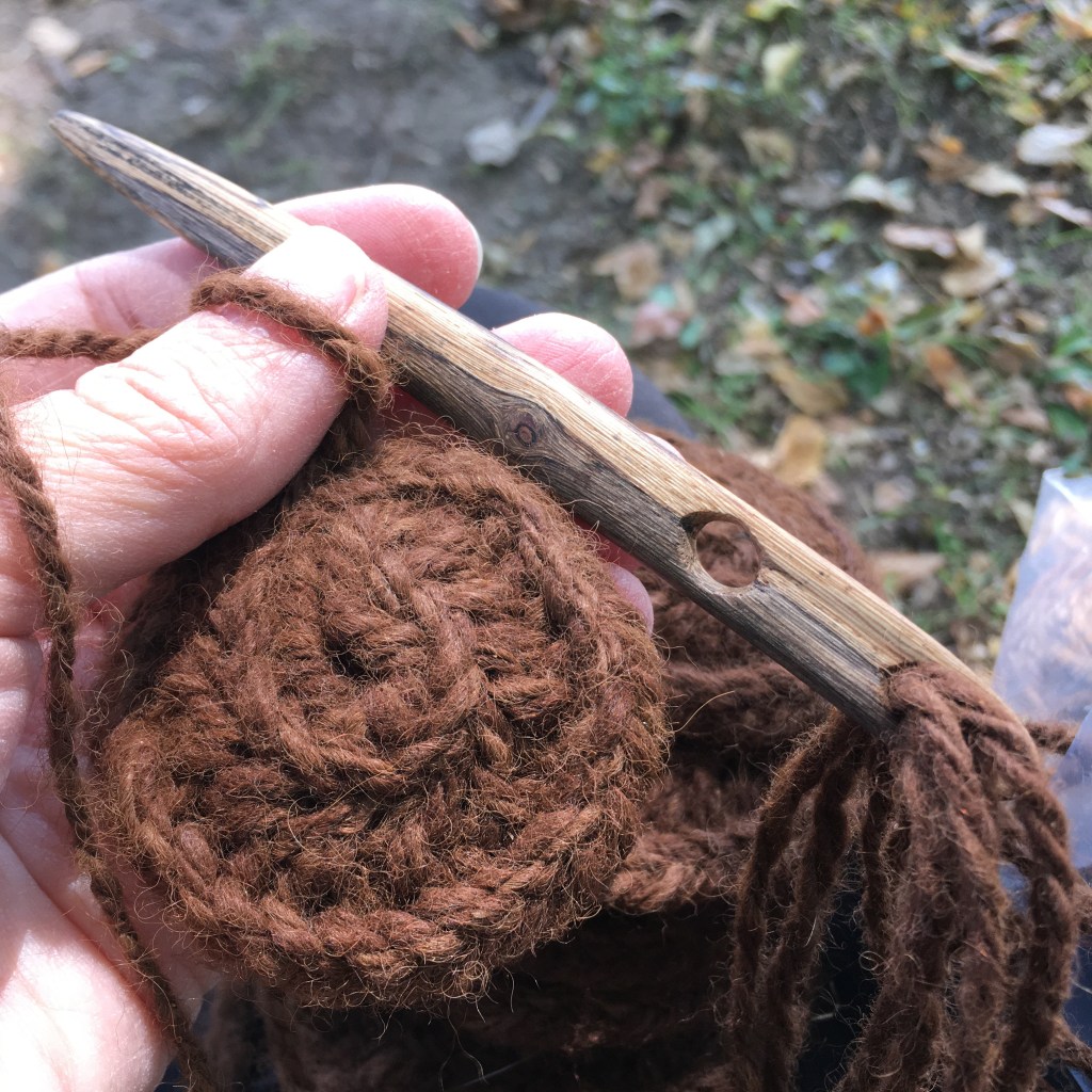 With virtual learning and a puppy to watch it has been hard to find the time and energy to do any needle craft, but I did find some space to get back to a nålbinding project now that my youngest is F2F (it probably dates me that I am using this abbreviation for the first time). Not only did I get to stitch, I did so outside in beautiful weather. Bliss.