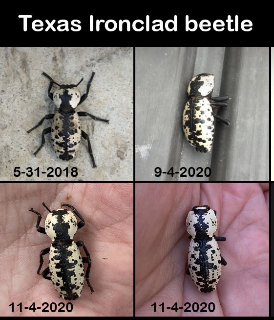 Ok, so I’m becoming a bit obsessed about these little guys. Since little is known about them, and we seem to have an active population nearby, I’ve decided to catalogue all the individuals I encounter. Unfortunately, I mostly see them around the house where the exterminator has been, but when moved out to the lichen encrusted woodpile, they either recover, or are otherwise spirited away. They seem to be quite hardy, and I’ve read that they play dead. Fascinating. So this is the start of my catalog. I’ve documented four individuals over three years, two of which were found in the last week. I say individuals because they all have a different carapace pattern. The next question: do they change pattern when they molt? I’m hoping that answer is no, but I will add it to my study questions.