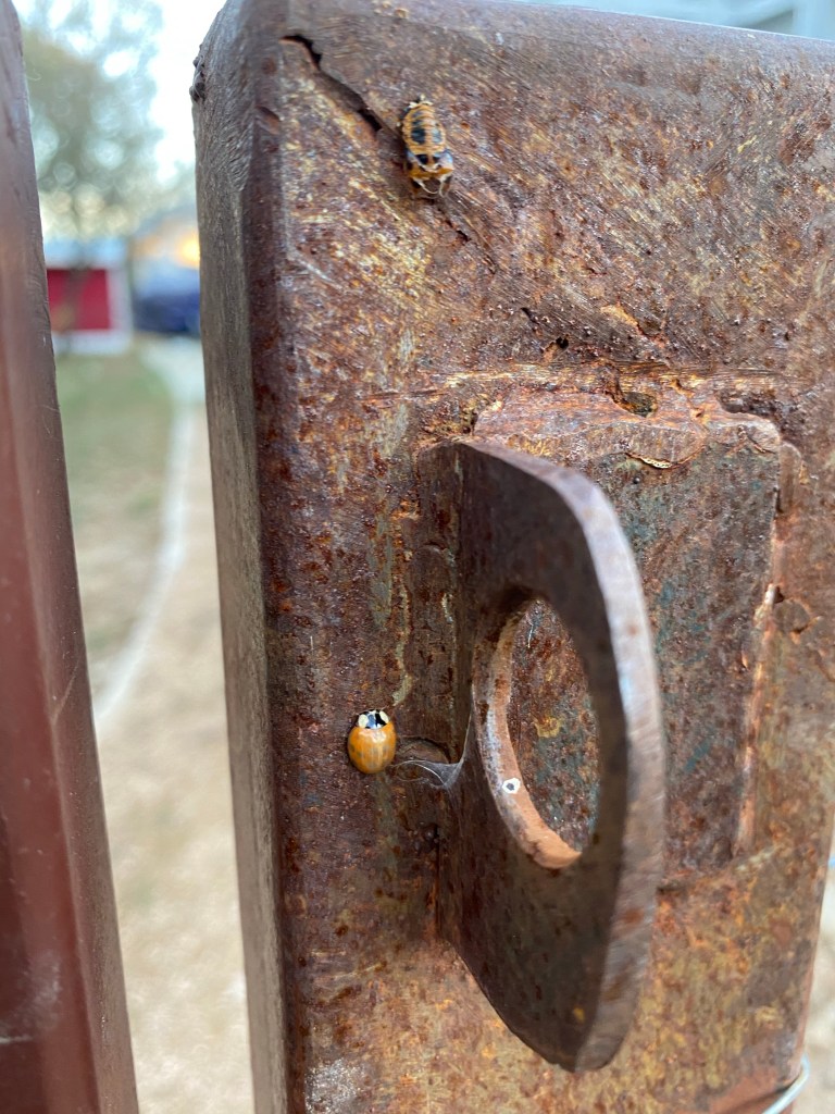 We usually have to buy a kit to see beetle metamorphosis, but an Asian Lady Beetle pupated on the fence gate and when it emerged, stayed on the fence. Yes, I know the Asian Lady Beetles are an invasive species, but it was still neat to see the transformation not under glass.