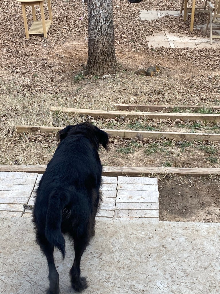 I think the local squirrels enjoy antagonizing the dog. Or it was trying to get attention because the feeder was empty. Still, the squirrel has some brass.