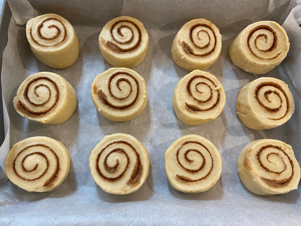 I did use my dough hook and my stand mixer to prep the recipe, and I only made one pan of rolls instead of two, but otherwise followed the instructions! Rolling out dough with developed gluten takes a little more effort than gluten-free types, but it held well and made such lovely spirals of cinnamon. (Spirals and cinnamon are also two of my favorite things.)