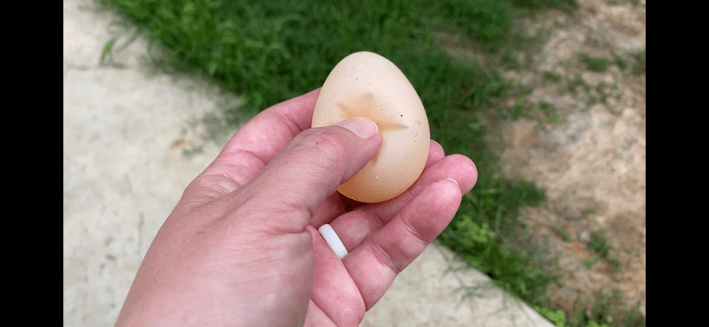 I found an egg under the roost with no shell again. It doesn’t happen often, but it has happened multiple times since they started laying. The egg membrane is intact, so it is possible to pick up, but it certainly has an interesting texture, much like an egg that has been soaked in vinegar to remove the shell, but without the bouncing. I recorded a video to show the squishiness, if you are interested. These eggs typically go to the dogs!
