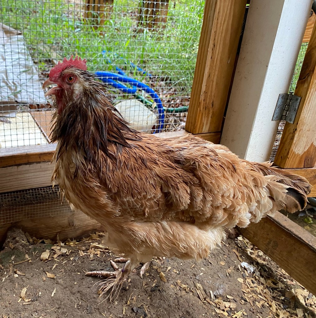 The rain. The rain that just keeps coming. I know it is springtime in Texas, which means rainstorms, but this year feels different. It isn’t Harvey bad, we actually have seen the sun and blue sky, but the ground is so wet and has been soaking wet with little chance to dry out. The chicken’s run has been wet for so long it is growing algae. Twilight couldn’t care less, and wanders out into the downpour, coming back looking bedraggled. In the picture above she is not mad about being soaked, she is mad that I am chasing her around with a camera (and also, since I’m there, is there another round of grubs?) On the plus side, the drainage I dug continues to keep the area around the coop door dry, so their food is dry and they have some dry dirt for dust baths. Everything else in the runs, though, is damp and soggy.