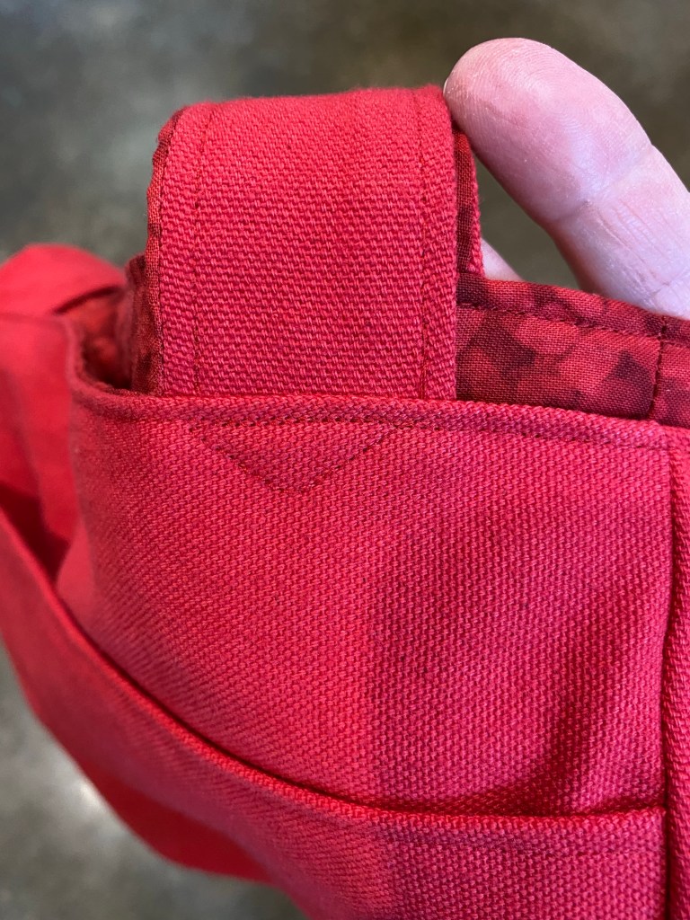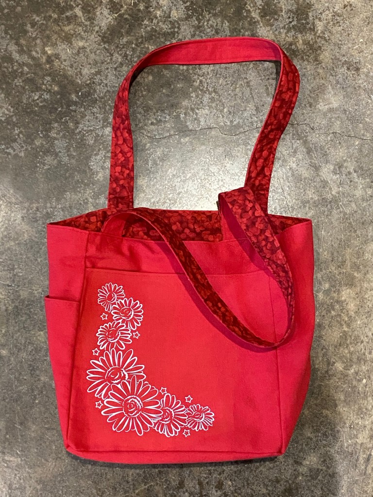 I’ve been wanting to make a pocketed bag for awhile. I decided to use some excess fabric thus reducing the stash as well as making something useful!