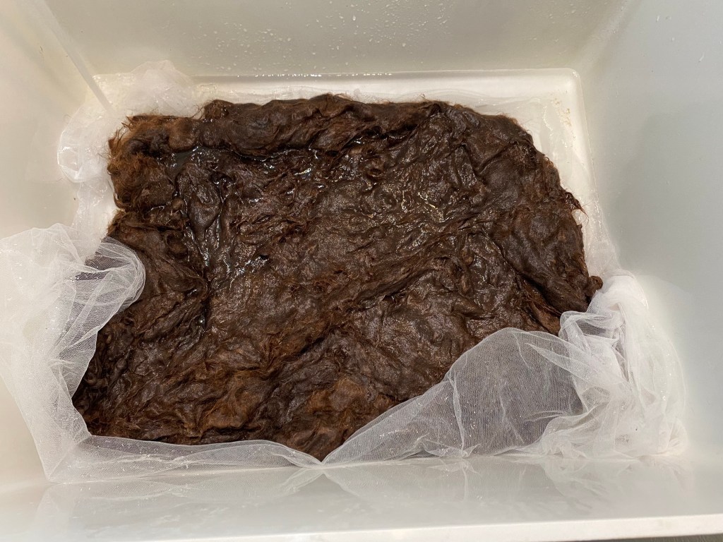 This was an excellent test. The alpaca yarn combined with this stitch made a very dense fabric. I think a human-sized version would be quite heavy.