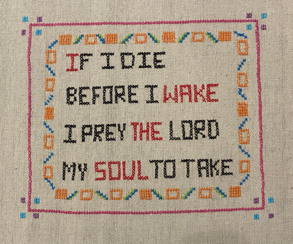 My eldest needed another prop for a play; this time it was ugly needle craft. Hm. In theory, to make ugly needle craft you need to do the opposite of all that is done for good needle craft. The director sent an image of cross stitch as an example, but these guidelines would work for most kinds of needle craft, should you find yourself needing to make cringe-worthy thread embellished decor. So here are my pointers: